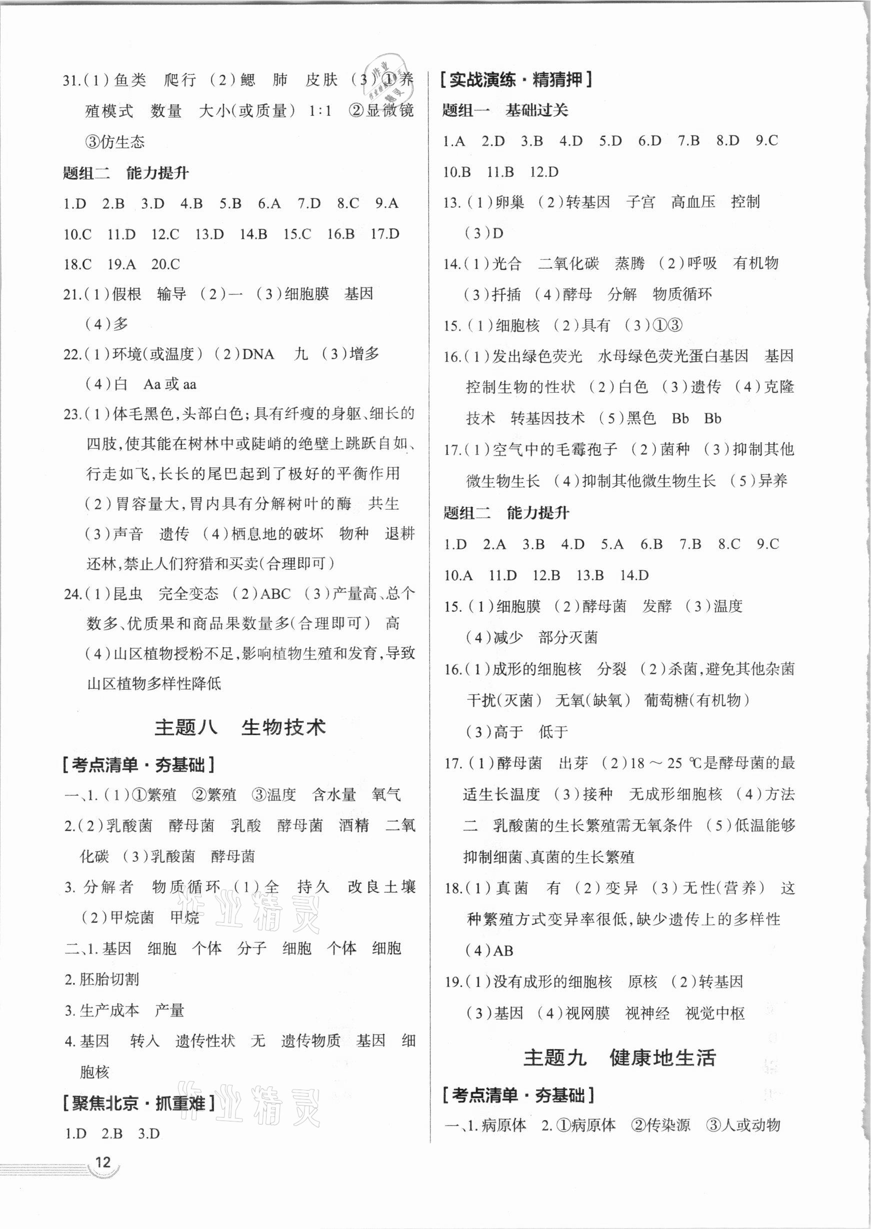 注:目前有些书本章节名称可能整理的还不是很完善,但都是按照顺序排列的,请同学们按照顺序仔细查找。练习册 2021年中考零距离生物北京专版 答案主要是用来给同学们做完题方便对答案用的,请勿直接抄袭。