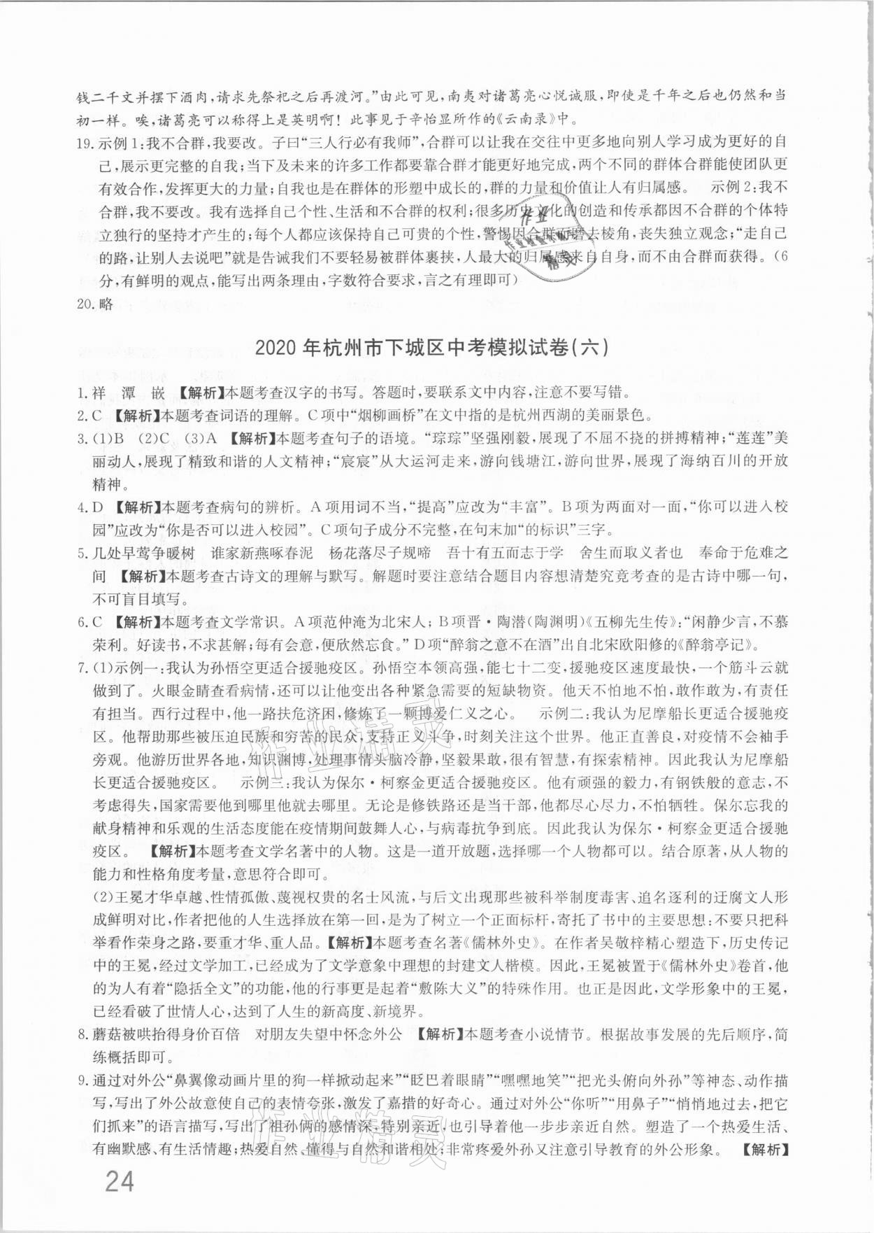注:目前有些书本章节名称可能整理的还不是很完善,但都是按照顺序排列的,请同学们按照顺序仔细查找。练习册 2021年杭州名校中考模拟试卷汇编语文人教版 答案主要是用来给同学们做完题方便对答案用的,请勿直接抄袭。