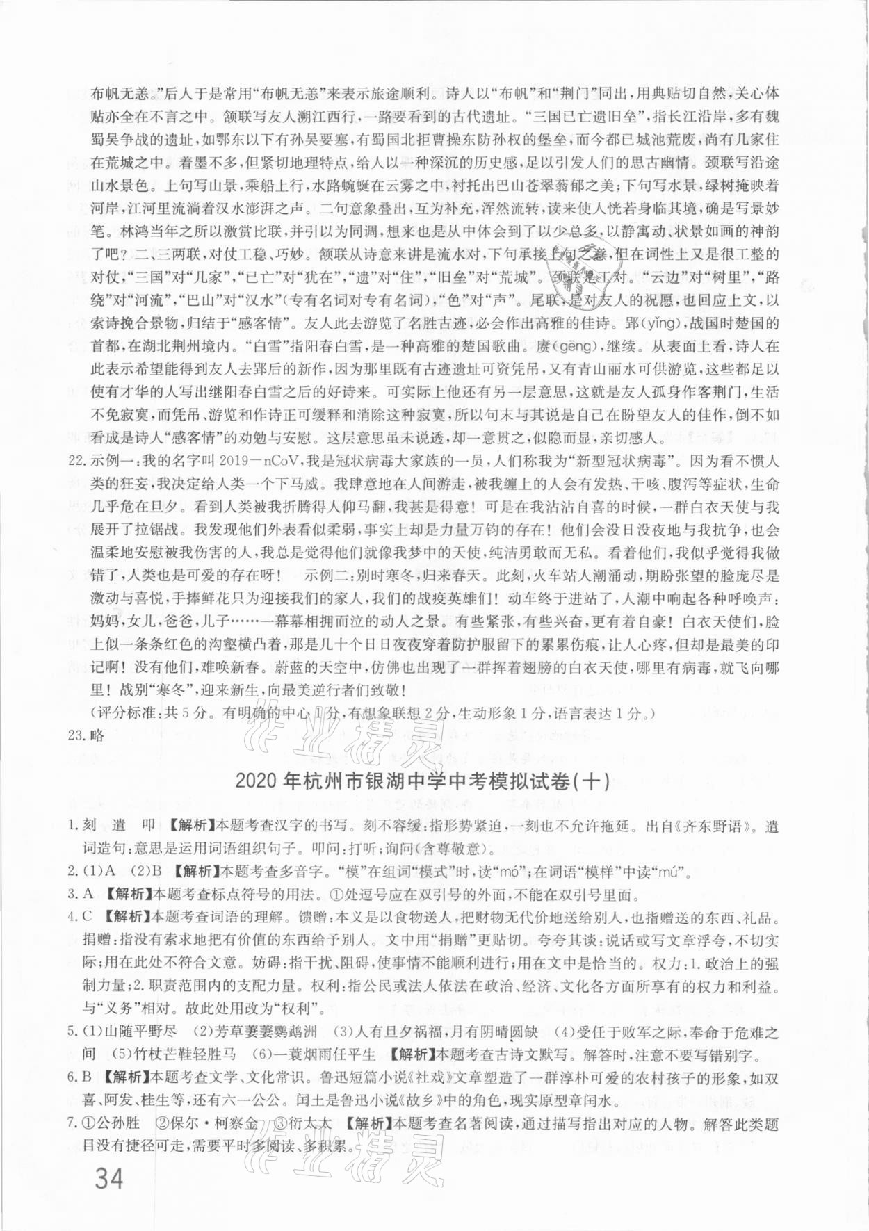 2021年杭州名校中考模拟试卷汇编语文人教版