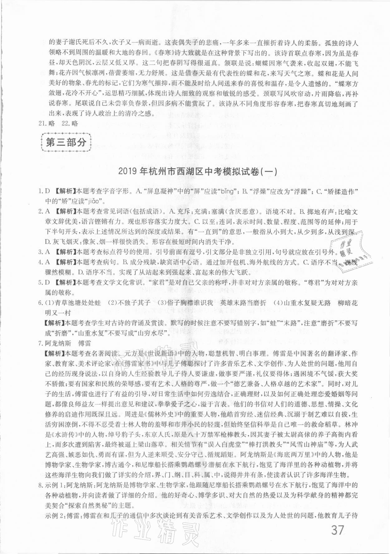 注:目前有些书本章节名称可能整理的还不是很完善,但都是按照顺序排列的,请同学们按照顺序仔细查找。练习册 2021年杭州名校中考模拟试卷汇编语文人教版 答案主要是用来给同学们做完题方便对答案用的,请勿直接抄袭。
