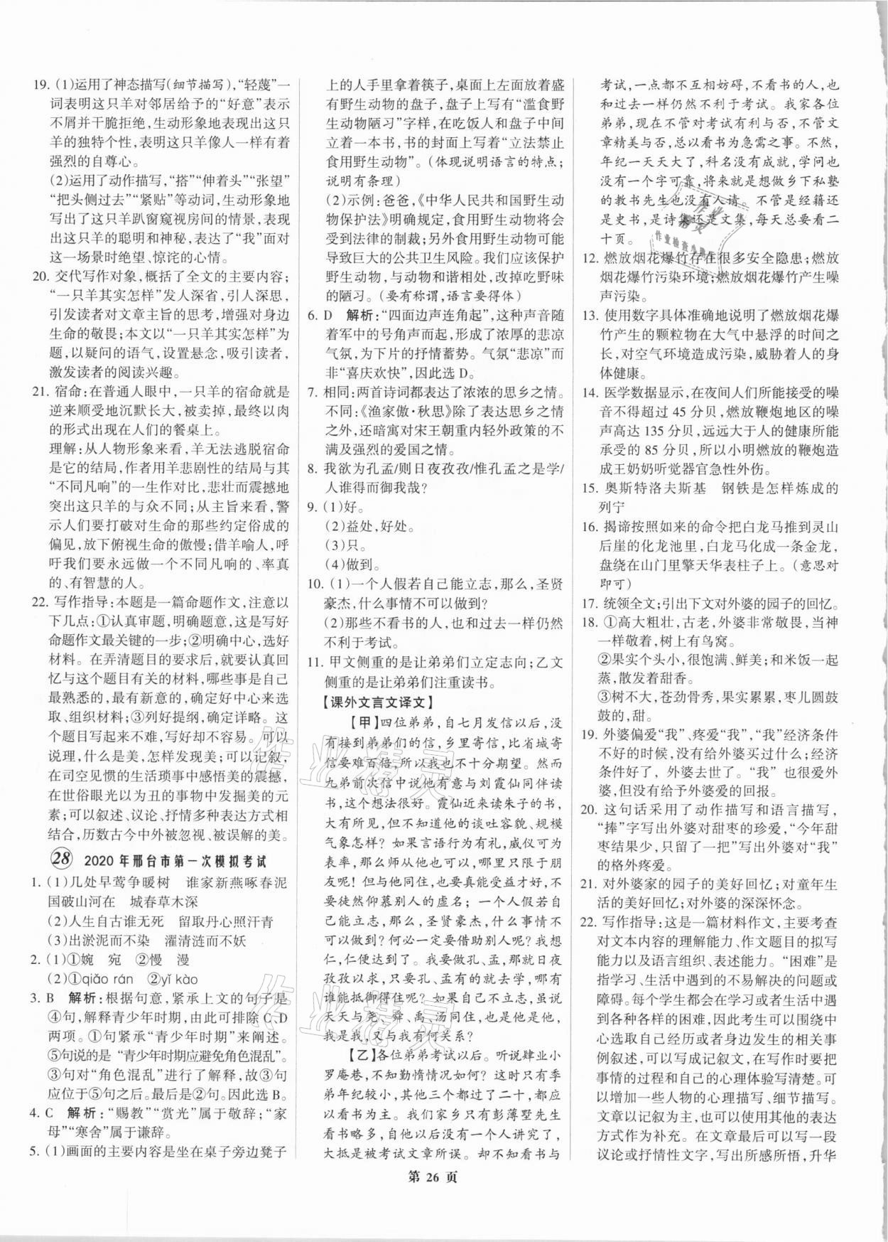 注:目前有些书本章节名称可能整理的还不是很完善,但都是按照顺序排列的,请同学们按照顺序仔细查找。练习册 2021年全优中考全国中考试题精选精析语文河北专版 答案主要是用来给同学们做完题方便对答案用的,请勿直接抄袭。