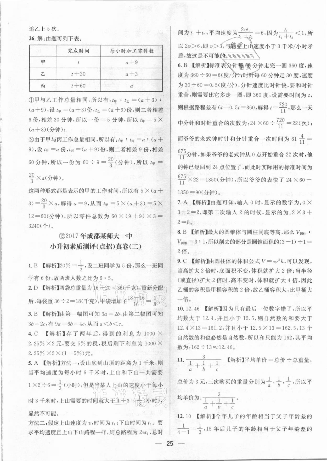 2021年名校名卷小学毕业升学全真试卷数学人教版
