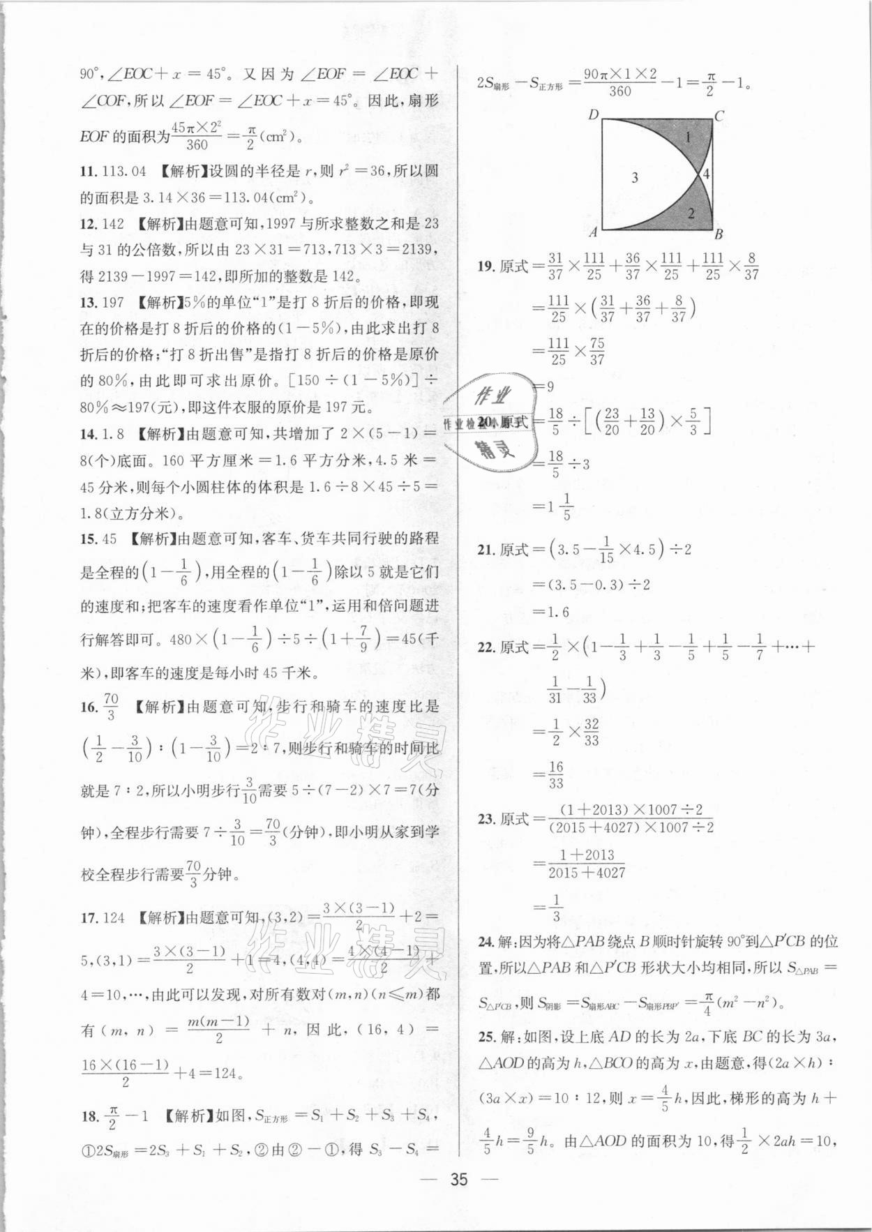 2021年名校名卷小学毕业升学全真试卷数学人教版