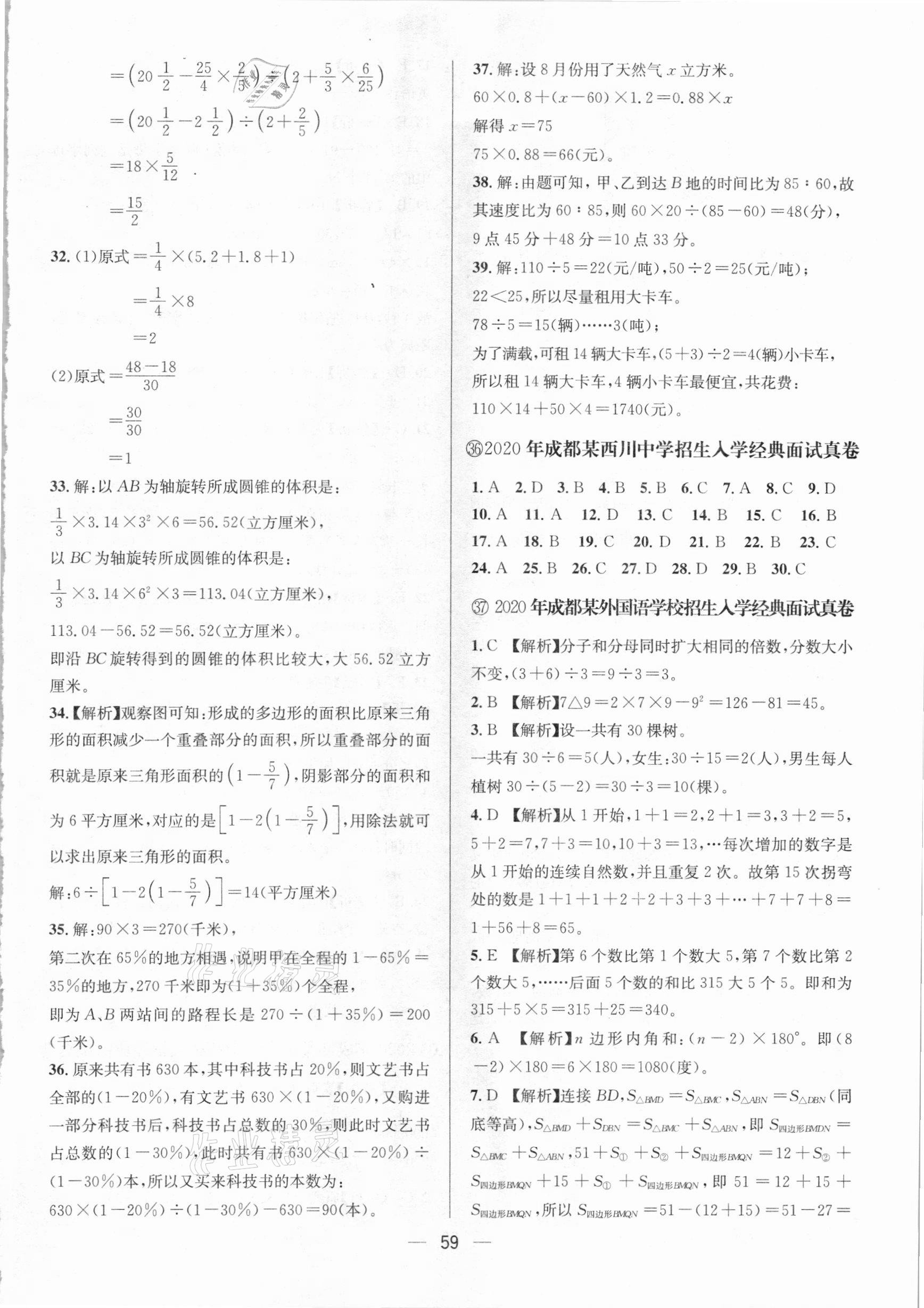 2021年名校名卷小学毕业升学全真试卷数学人教版