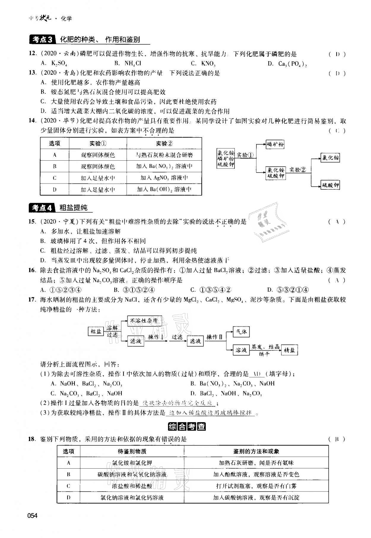 注:目前有些书本章节名称可能整理的还不是很完善,但都是按照顺序排列的,请同学们按照顺序仔细查找。练习册 2021年中考状元化学 答案主要是用来给同学们做完题方便对答案用的,请勿直接抄袭。