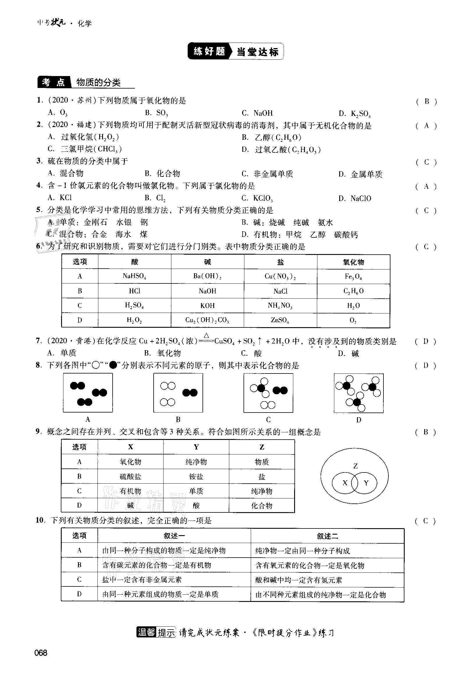 注:目前有些书本章节名称可能整理的还不是很完善,但都是按照顺序排列的,请同学们按照顺序仔细查找。练习册 2021年中考状元化学 答案主要是用来给同学们做完题方便对答案用的,请勿直接抄袭。