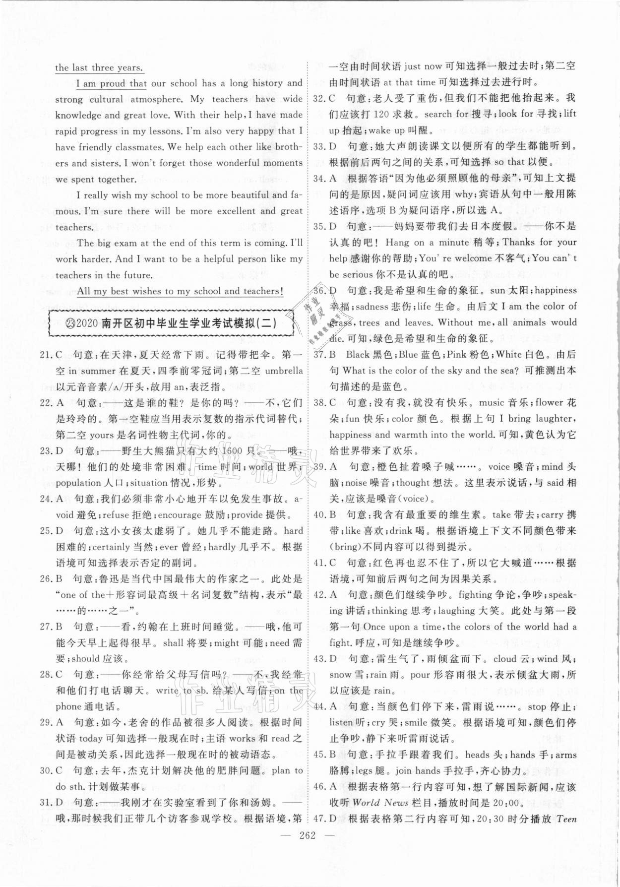 注:目前有些书本章节名称可能整理的还不是很完善,但都是按照顺序排列的,请同学们按照顺序仔细查找。练习册 2021年一飞冲天中考模拟试题汇编英语 答案主要是用来给同学们做完题方便对答案用的,请勿直接抄袭。