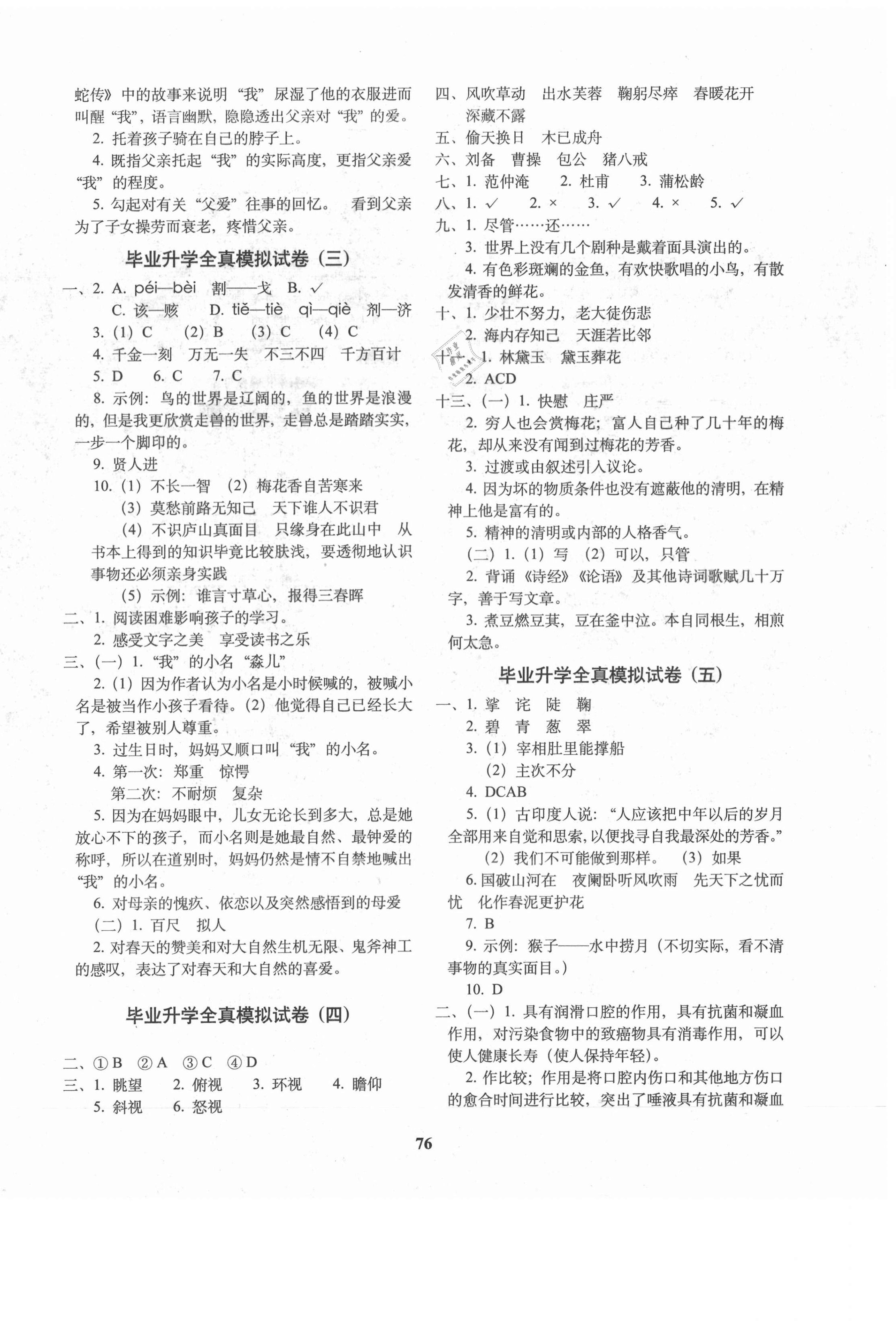 注:目前有些书本章节名称可能整理的还不是很完善,但都是按照顺序排列的,请同学们按照顺序仔细查找。练习册 2021年68所教学教科所小学毕业升学全真模拟试卷语文 答案主要是用来给同学们做完题方便对答案用的,请勿直接抄袭。