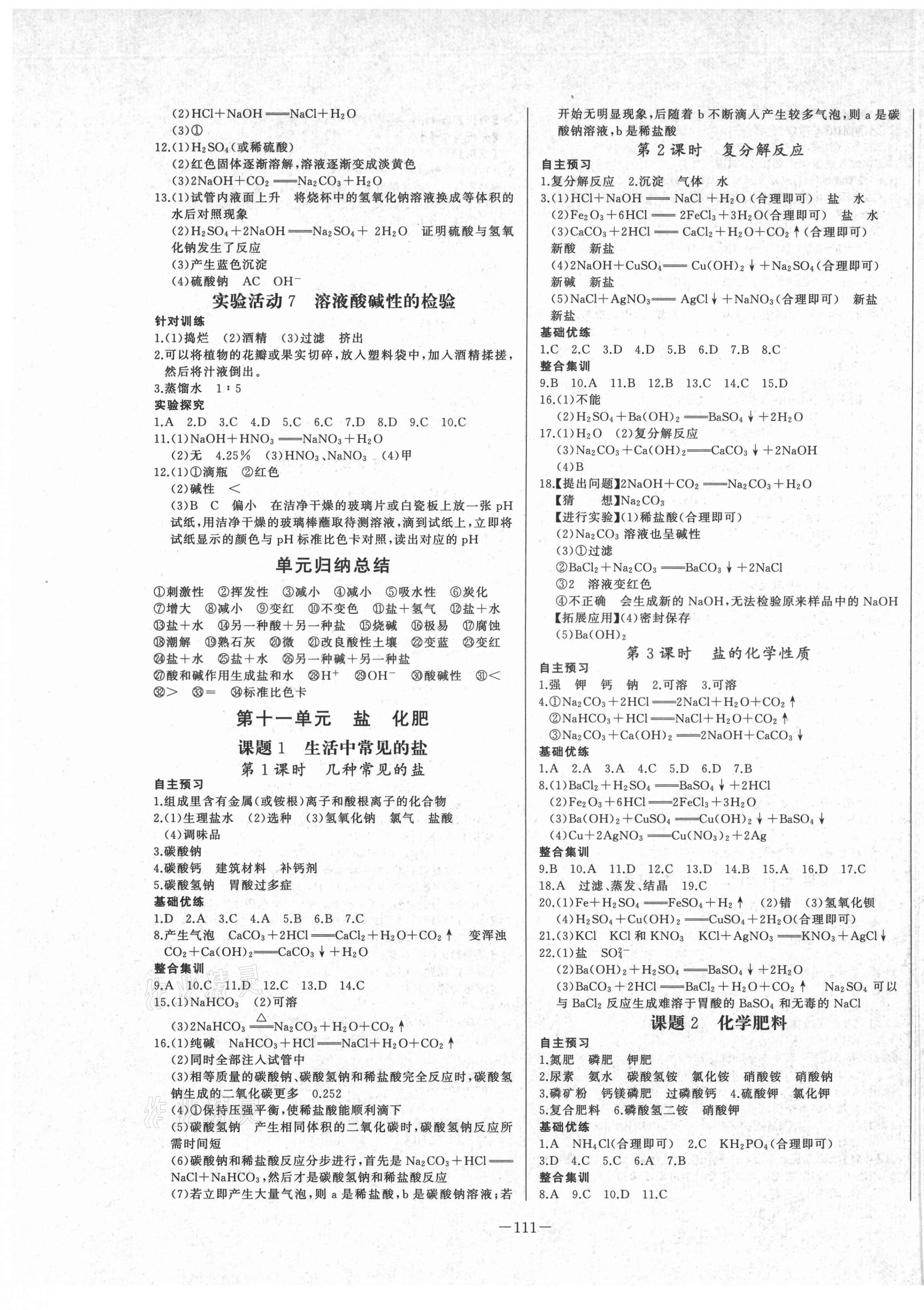 注:目前有些书本章节名称可能整理的还不是很完善,但都是按照顺序排列的,请同学们按照顺序仔细查找。练习册 2021年A加优化作业本九年级化学下册人教版江西专版 答案主要是用来给同学们做完题方便对答案用的,请勿直接抄袭。