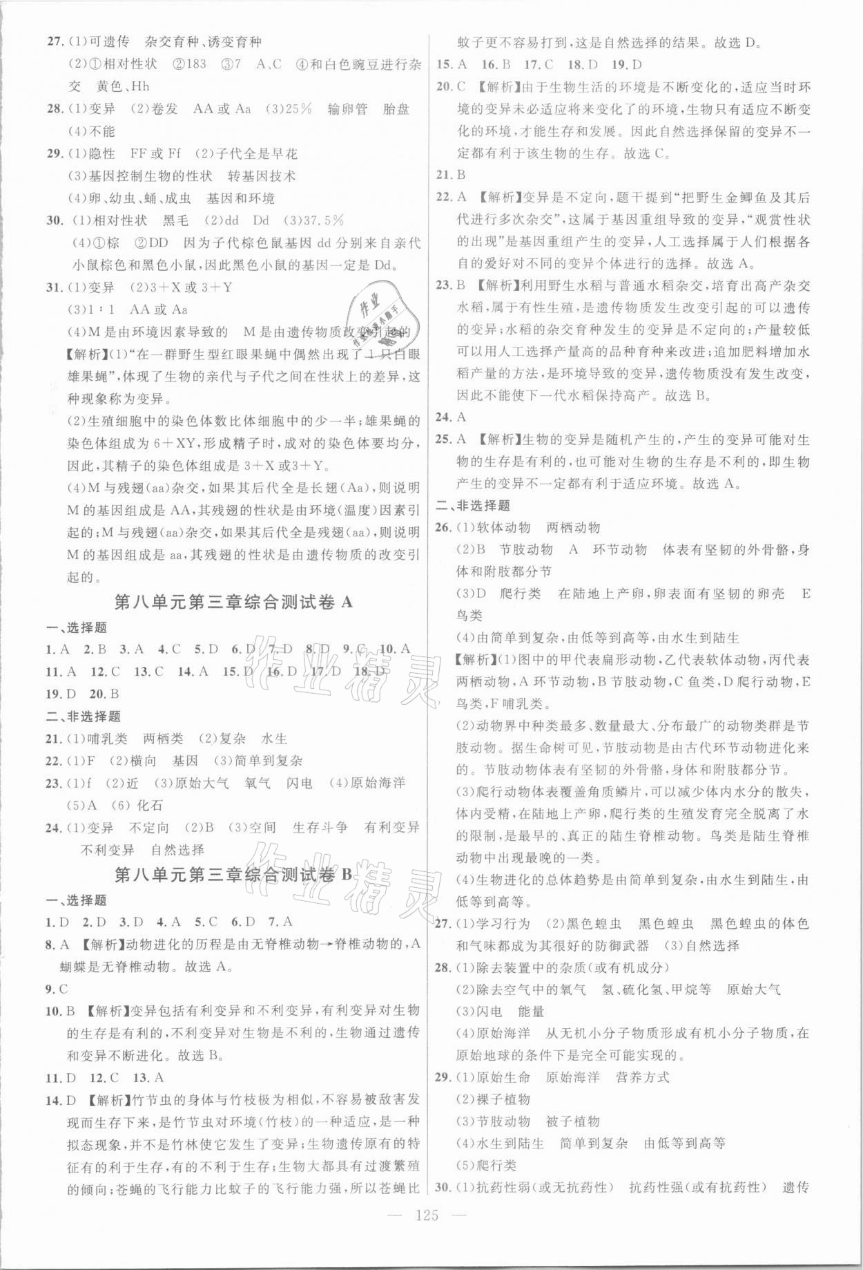 注:目前有些书本章节名称可能整理的还不是很完善,但都是按照顺序排列的,请同学们按照顺序仔细查找。练习册 2021年细解巧练八年级生物下册鲁教版54制 答案主要是用来给同学们做完题方便对答案用的,请勿直接抄袭。