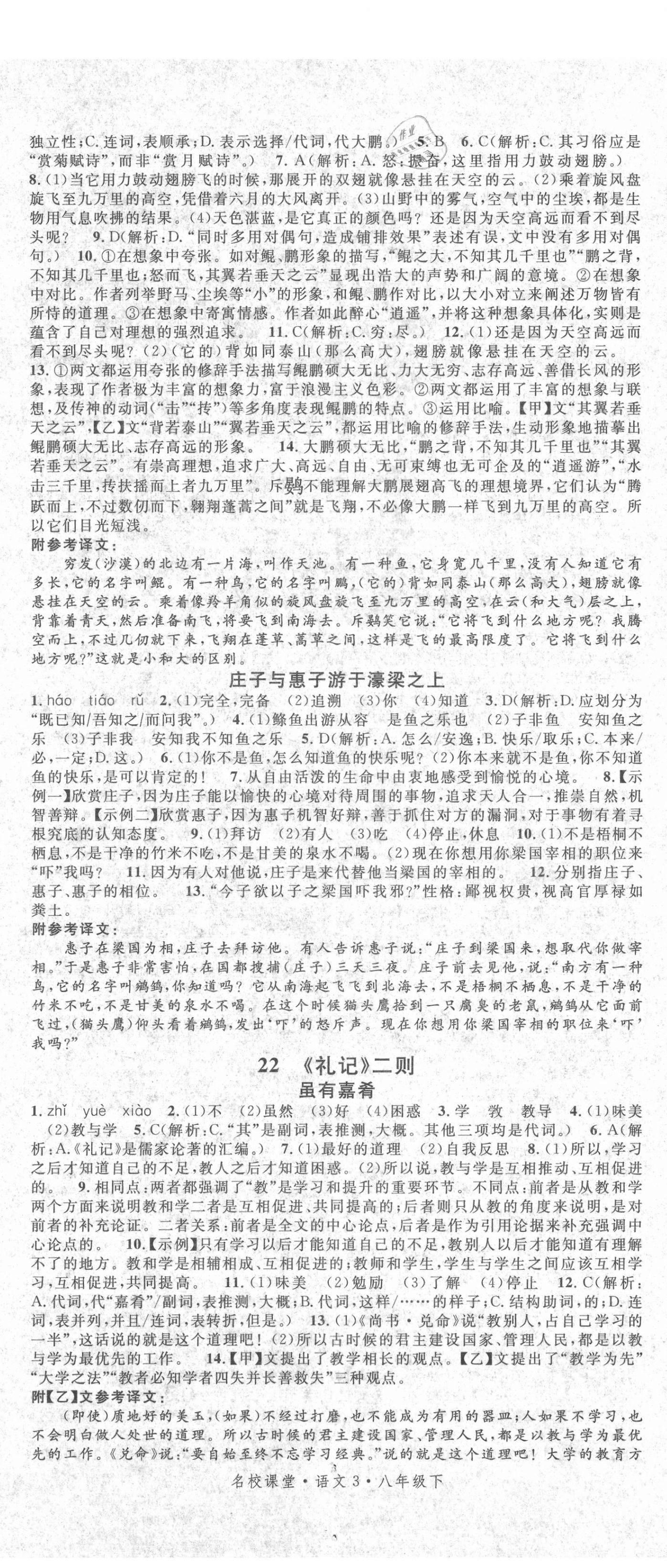 注:目前有些书本章节名称可能整理的还不是很完善,但都是按照顺序排列的,请同学们按照顺序仔细查找。练习册 2021年名校课堂八年级语文下册人教版3 答案主要是用来给同学们做完题方便对答案用的,请勿直接抄袭。