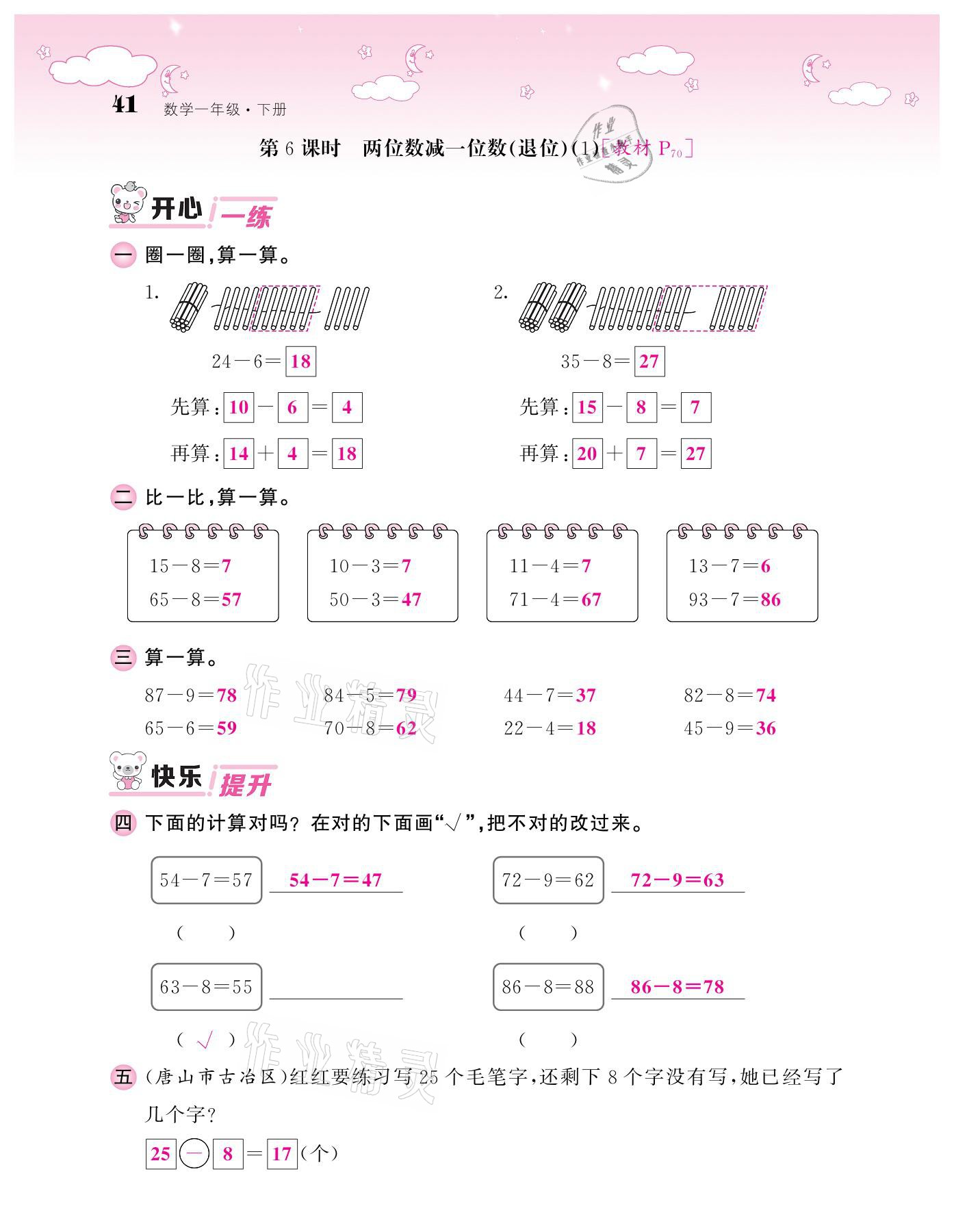 注:目前有些书本章节名称可能整理的还不是很完善,但都是按照顺序排列的,请同学们按照顺序仔细查找。练习册 2021年课堂点睛一年级数学下册人教版 答案主要是用来给同学们做完题方便对答案用的,请勿直接抄袭。