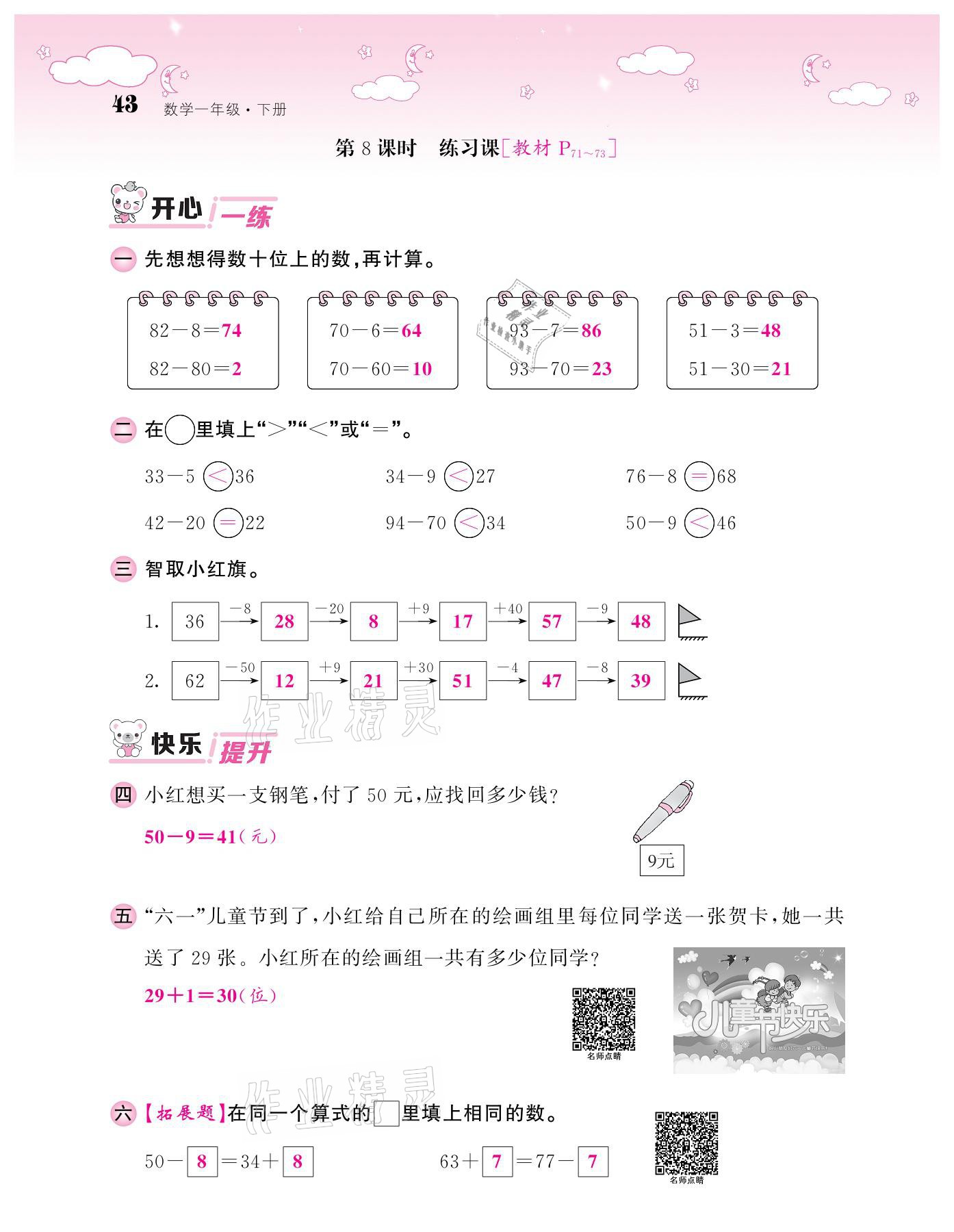 注:目前有些书本章节名称可能整理的还不是很完善,但都是按照顺序排列的,请同学们按照顺序仔细查找。练习册 2021年课堂点睛一年级数学下册人教版 答案主要是用来给同学们做完题方便对答案用的,请勿直接抄袭。
