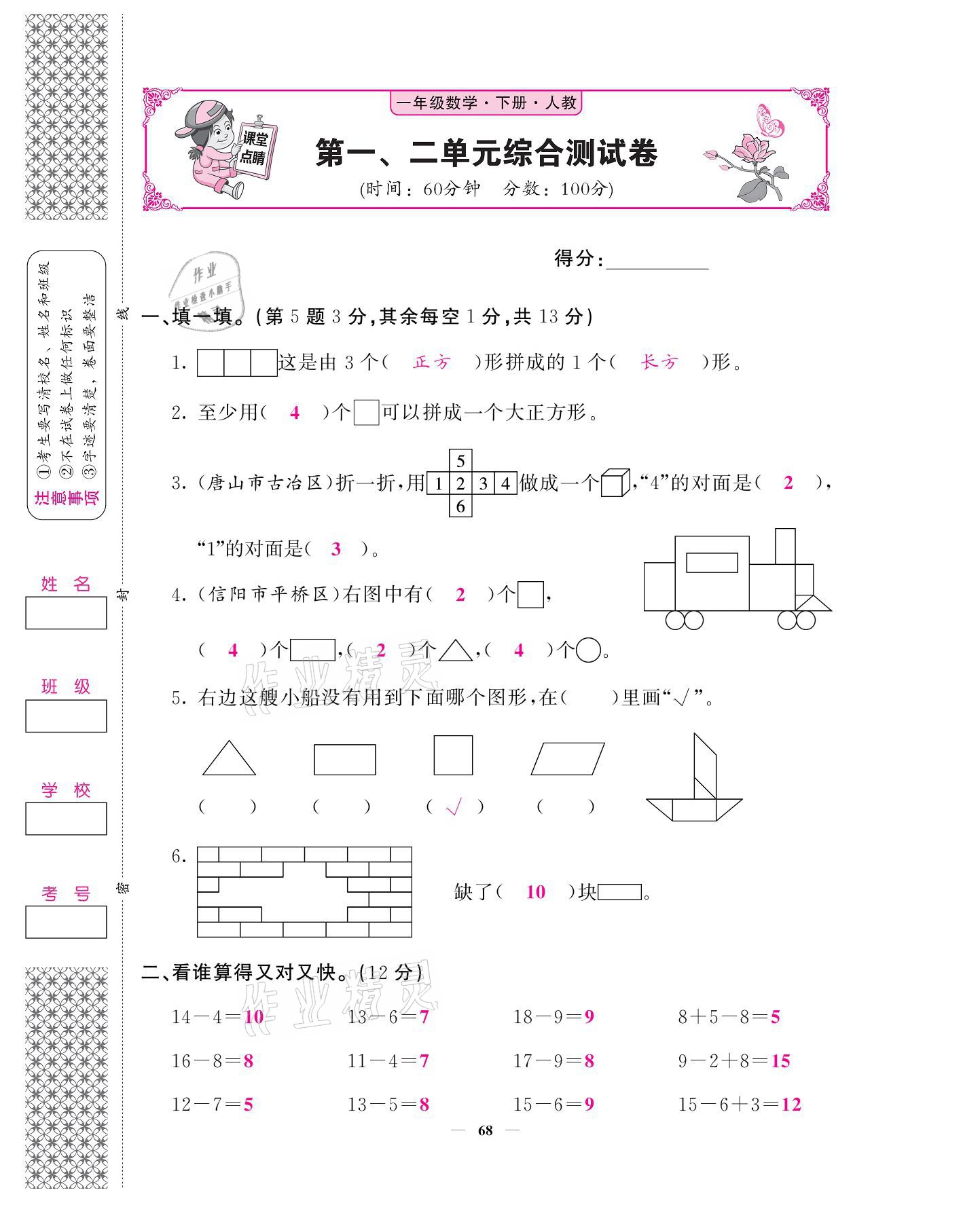 注:目前有些书本章节名称可能整理的还不是很完善,但都是按照顺序排列的,请同学们按照顺序仔细查找。练习册 2021年课堂点睛一年级数学下册人教版 答案主要是用来给同学们做完题方便对答案用的,请勿直接抄袭。