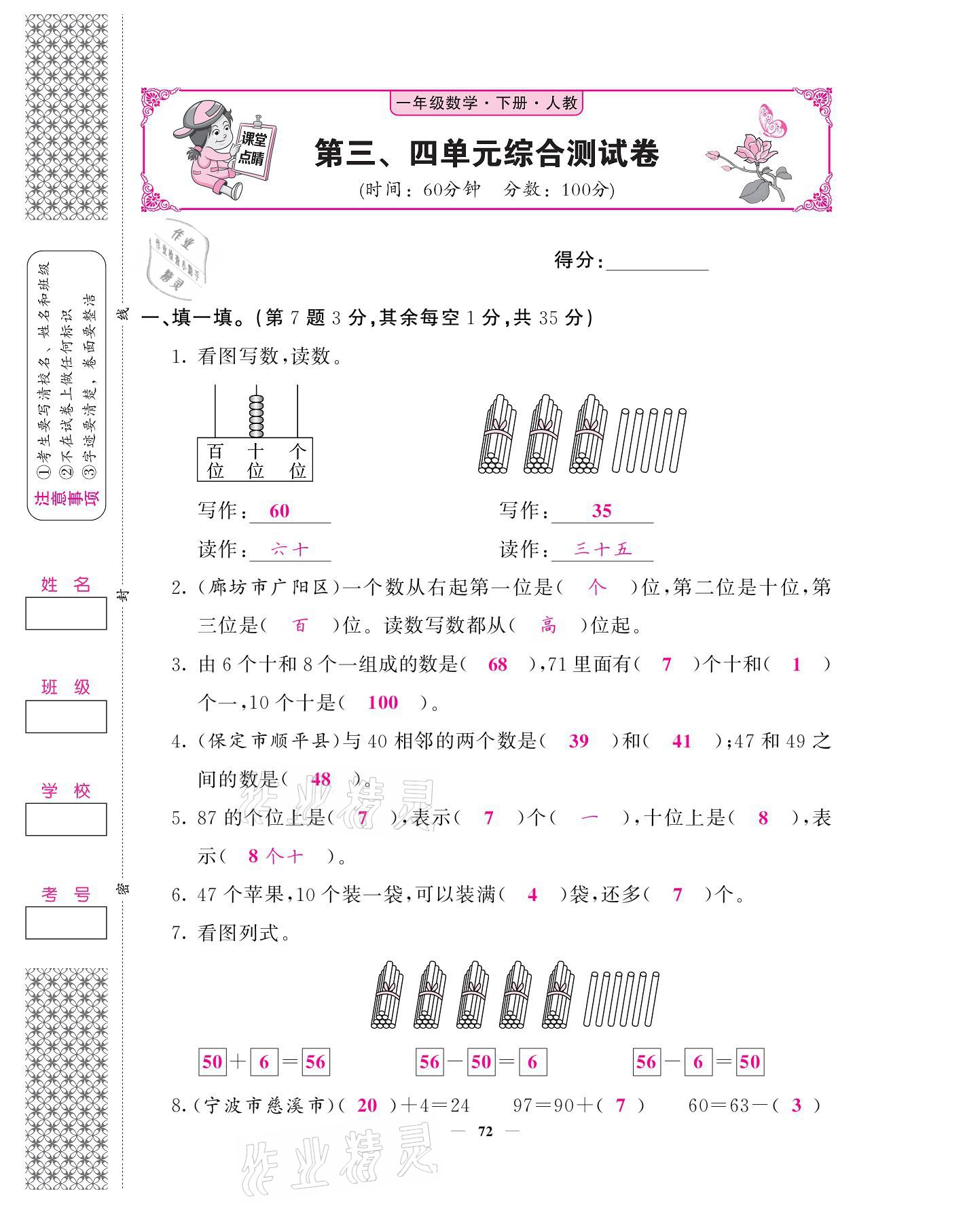 注:目前有些书本章节名称可能整理的还不是很完善,但都是按照顺序排列的,请同学们按照顺序仔细查找。练习册 2021年课堂点睛一年级数学下册人教版 答案主要是用来给同学们做完题方便对答案用的,请勿直接抄袭。