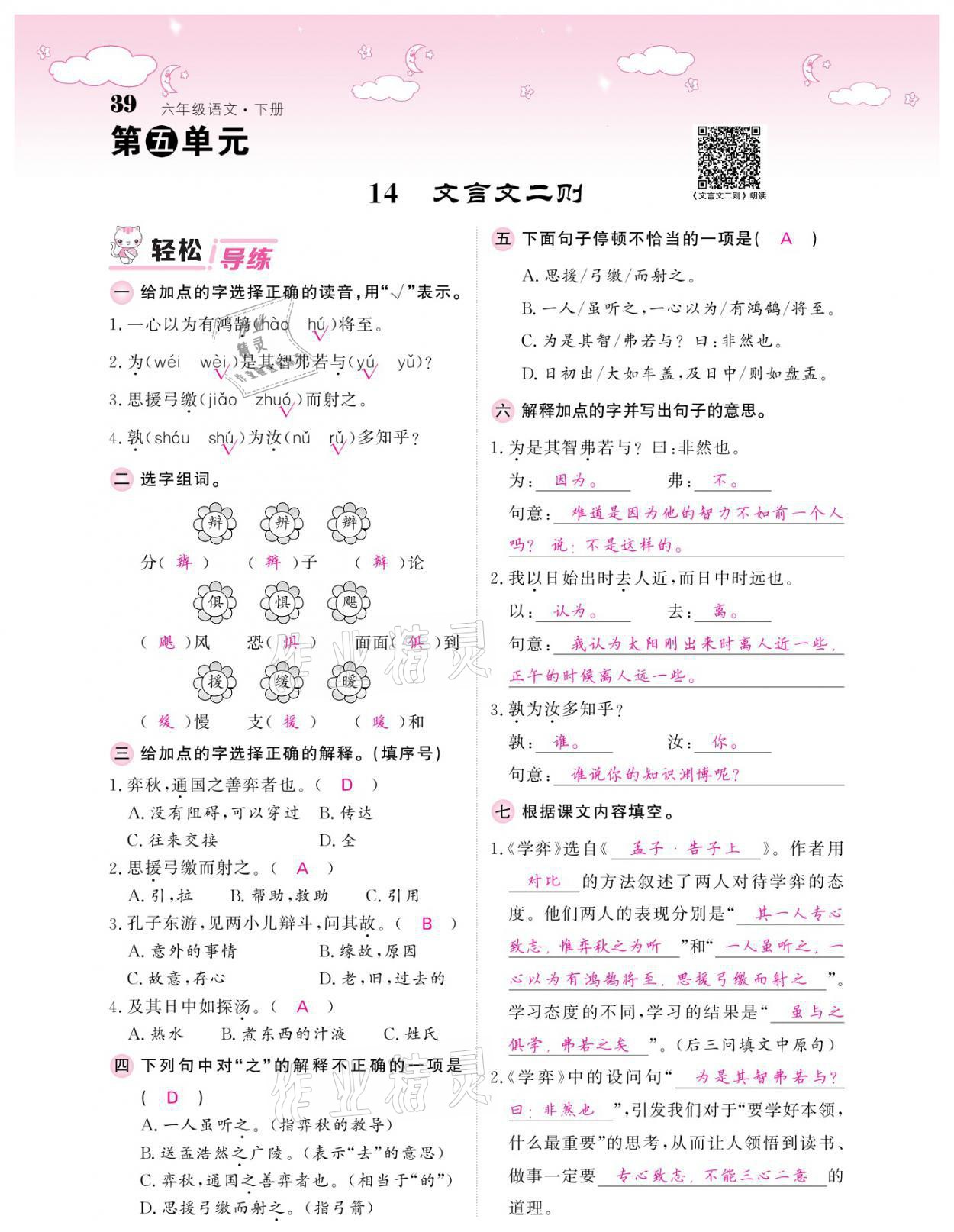 注:目前有些书本章节名称可能整理的还不是很完善,但都是按照顺序排列的,请同学们按照顺序仔细查找。练习册 2021年课堂点睛六年级语文下册人教版广东专版 答案主要是用来给同学们做完题方便对答案用的,请勿直接抄袭。