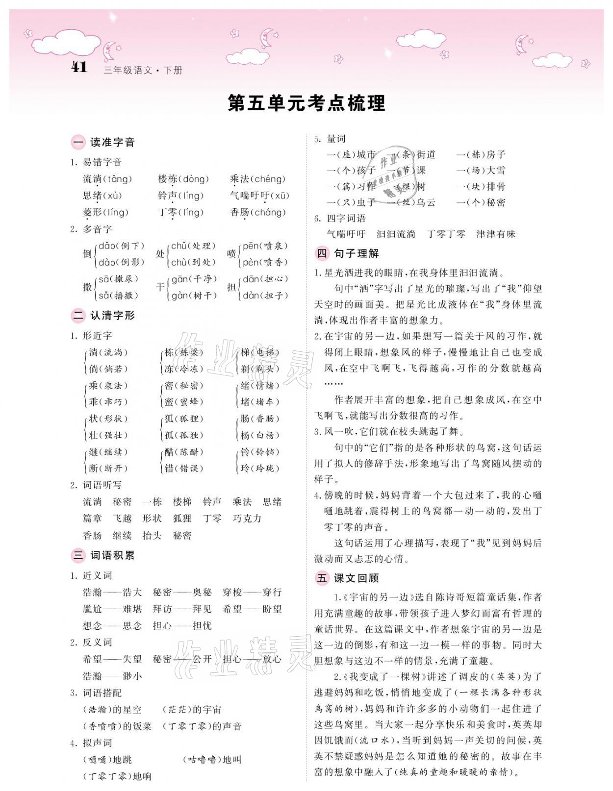 注:目前有些书本章节名称可能整理的还不是很完善,但都是按照顺序排列的,请同学们按照顺序仔细查找。练习册 2021年课堂点睛三年级语文下册人教版广东专版 答案主要是用来给同学们做完题方便对答案用的,请勿直接抄袭。