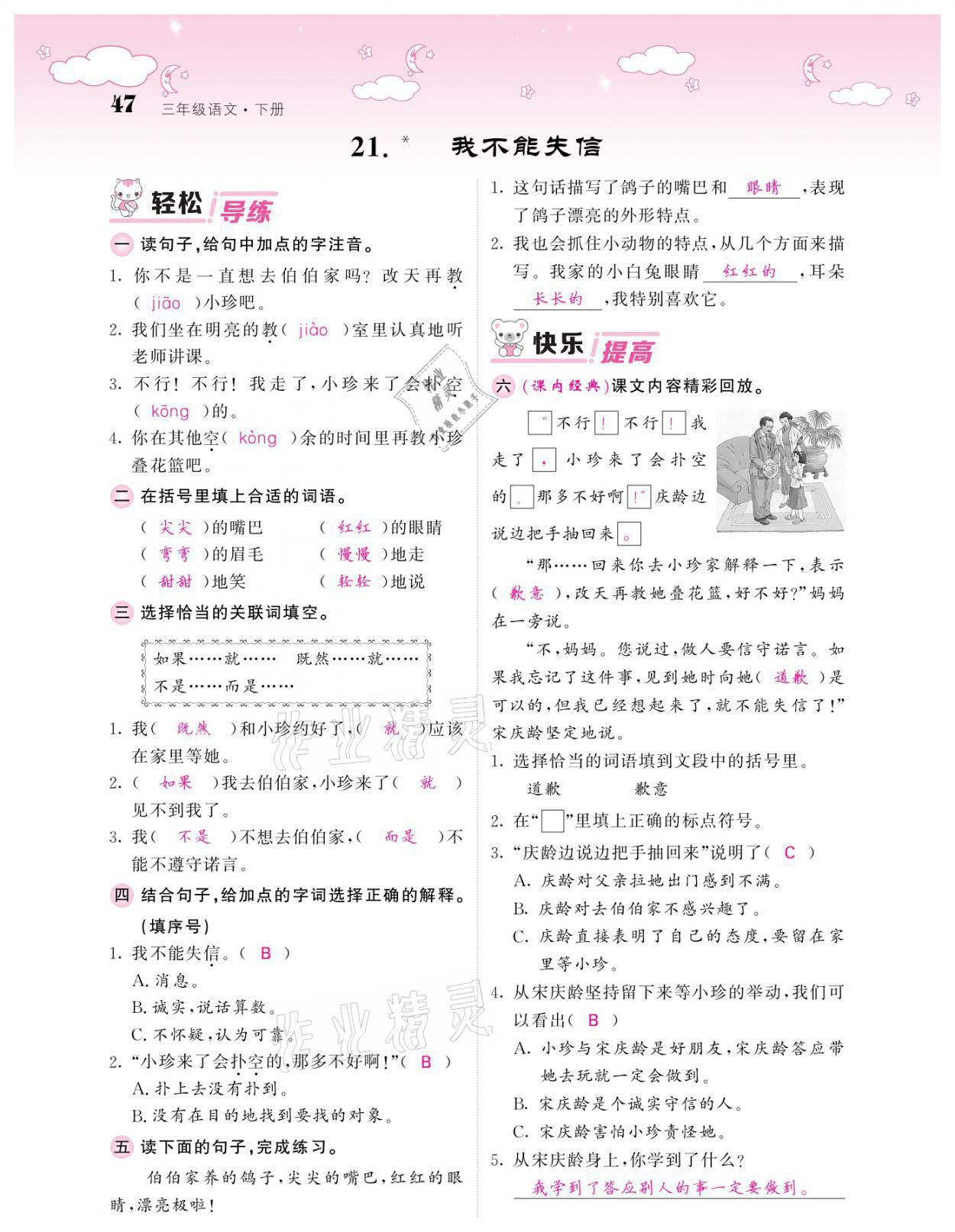 注:目前有些书本章节名称可能整理的还不是很完善,但都是按照顺序排列的,请同学们按照顺序仔细查找。练习册 2021年课堂点睛三年级语文下册人教版广东专版 答案主要是用来给同学们做完题方便对答案用的,请勿直接抄袭。