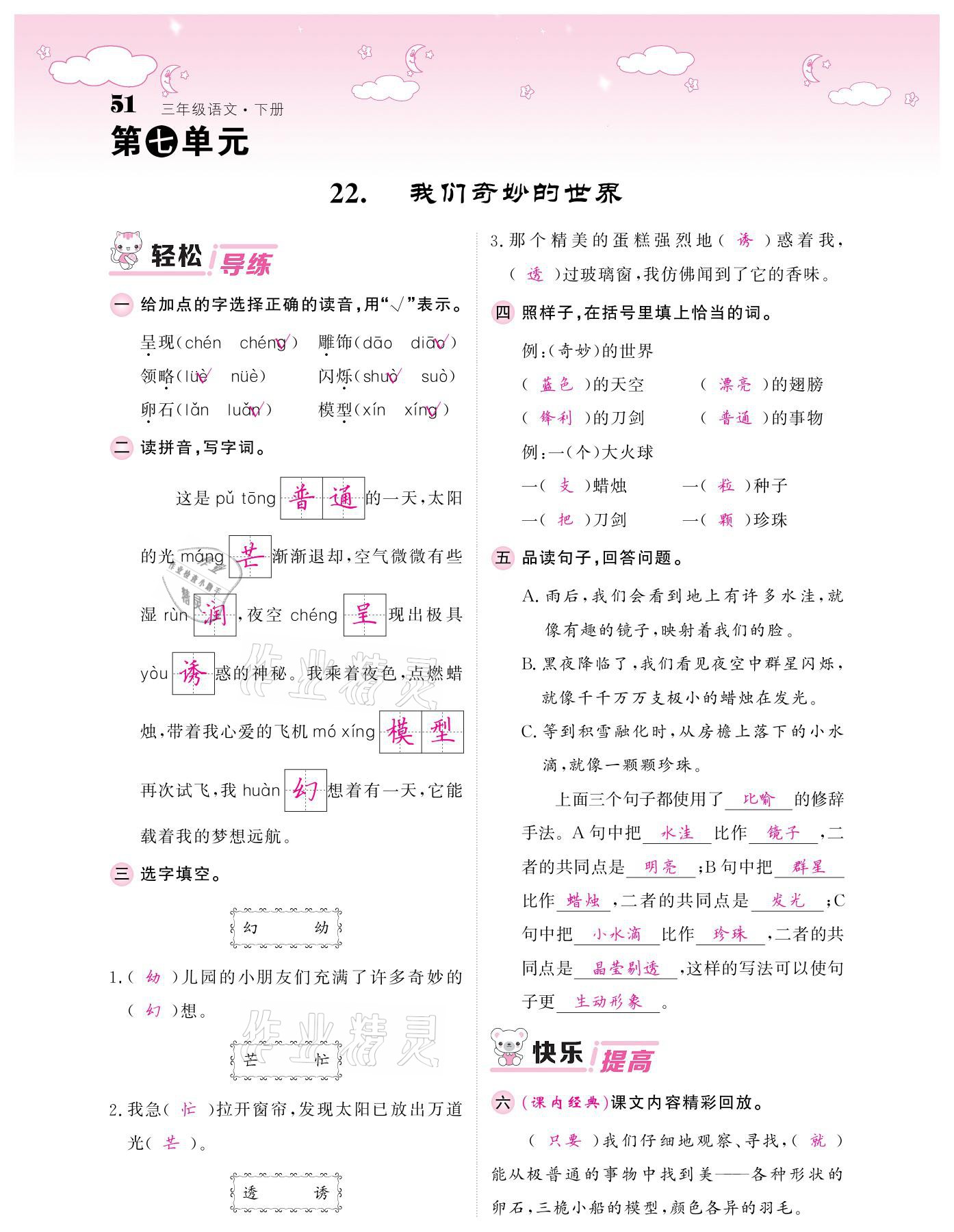 注:目前有些书本章节名称可能整理的还不是很完善,但都是按照顺序排列的,请同学们按照顺序仔细查找。练习册 2021年课堂点睛三年级语文下册人教版广东专版 答案主要是用来给同学们做完题方便对答案用的,请勿直接抄袭。