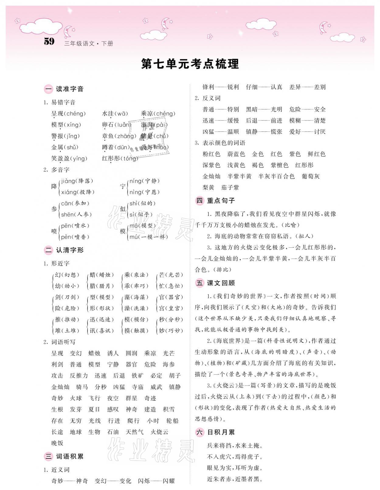 注:目前有些书本章节名称可能整理的还不是很完善,但都是按照顺序排列的,请同学们按照顺序仔细查找。练习册 2021年课堂点睛三年级语文下册人教版广东专版 答案主要是用来给同学们做完题方便对答案用的,请勿直接抄袭。