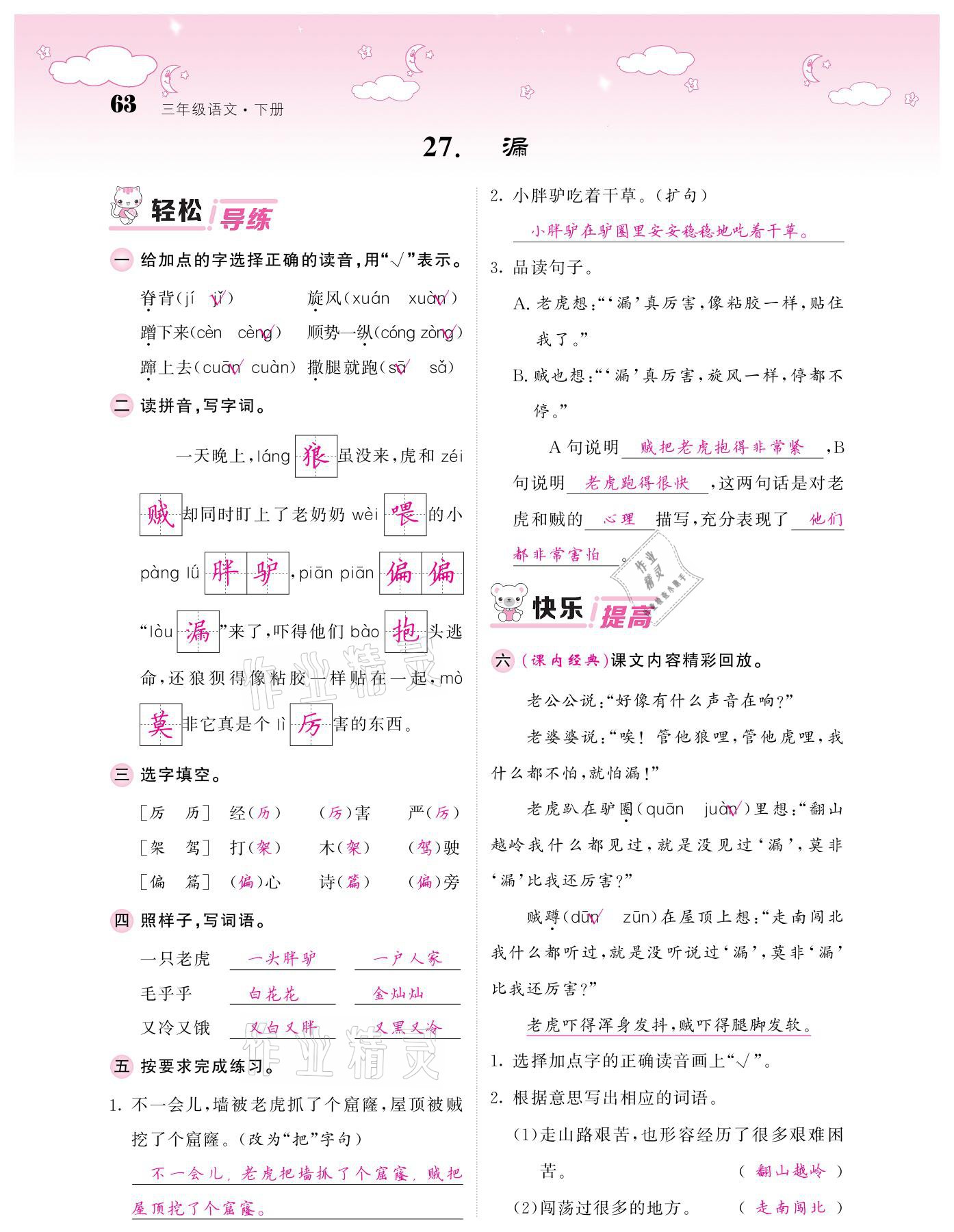 注:目前有些书本章节名称可能整理的还不是很完善,但都是按照顺序排列的,请同学们按照顺序仔细查找。练习册 2021年课堂点睛三年级语文下册人教版广东专版 答案主要是用来给同学们做完题方便对答案用的,请勿直接抄袭。
