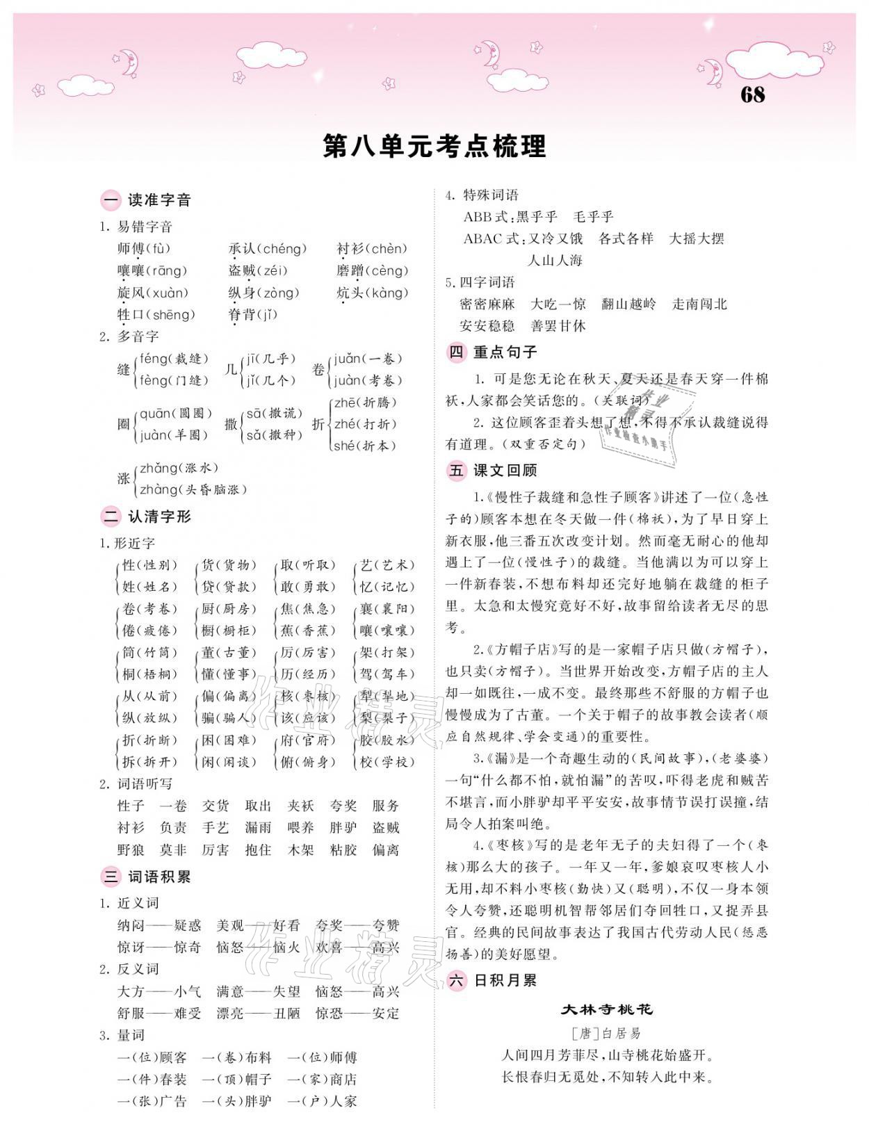 注:目前有些书本章节名称可能整理的还不是很完善,但都是按照顺序排列的,请同学们按照顺序仔细查找。练习册 2021年课堂点睛三年级语文下册人教版广东专版 答案主要是用来给同学们做完题方便对答案用的,请勿直接抄袭。