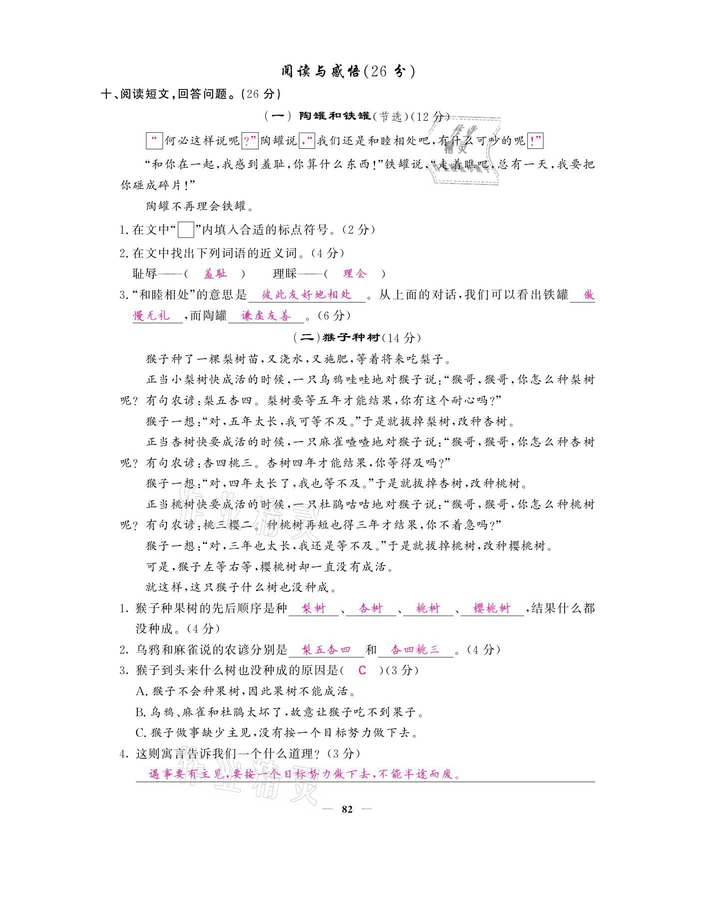 - 参考答案第82页