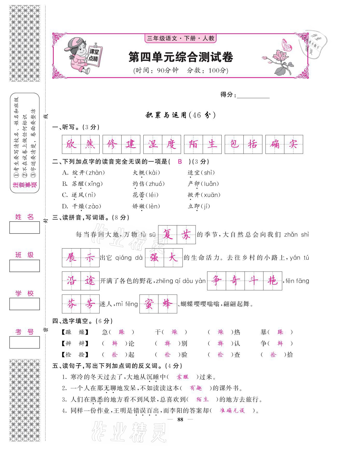 注:目前有些书本章节名称可能整理的还不是很完善,但都是按照顺序排列的,请同学们按照顺序仔细查找。练习册 2021年课堂点睛三年级语文下册人教版广东专版 答案主要是用来给同学们做完题方便对答案用的,请勿直接抄袭。