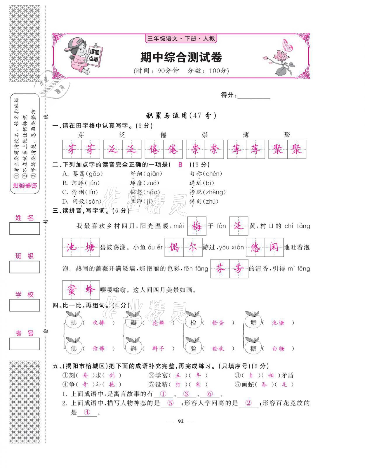 注:目前有些书本章节名称可能整理的还不是很完善,但都是按照顺序排列的,请同学们按照顺序仔细查找。练习册 2021年课堂点睛三年级语文下册人教版广东专版 答案主要是用来给同学们做完题方便对答案用的,请勿直接抄袭。