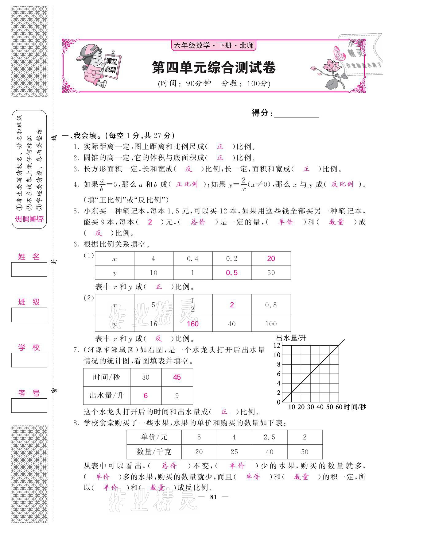 注:目前有些书本章节名称可能整理的还不是很完善,但都是按照顺序排列的,请同学们按照顺序仔细查找。练习册 2021年课堂点睛六年级数学下册北师大版广东专版 答案主要是用来给同学们做完题方便对答案用的,请勿直接抄袭。