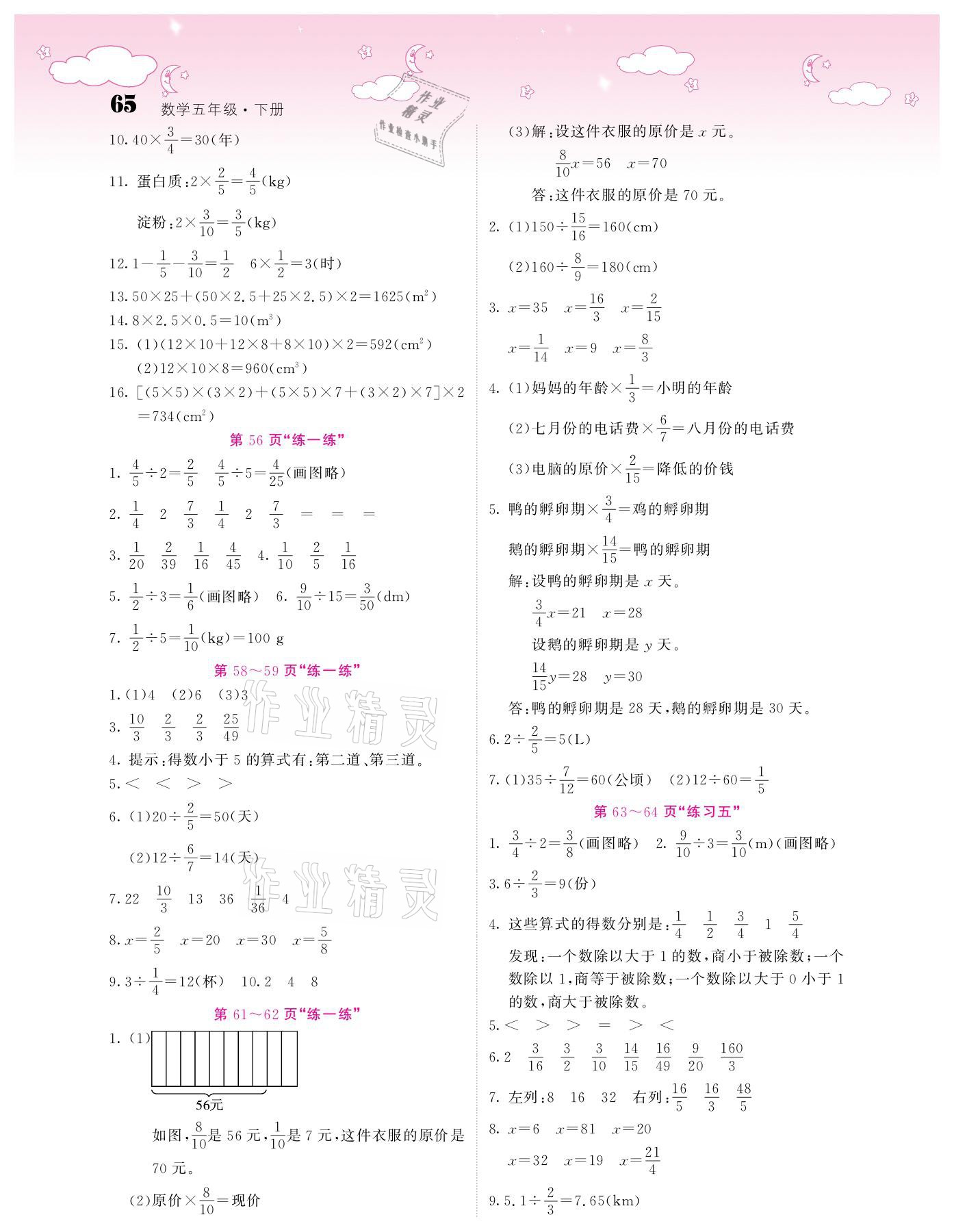 注:目前有些书本章节名称可能整理的还不是很完善,但都是按照顺序排列的,请同学们按照顺序仔细查找。练习册 2021年课堂点睛五年级数学下册北师大版广东专版 答案主要是用来给同学们做完题方便对答案用的,请勿直接抄袭。