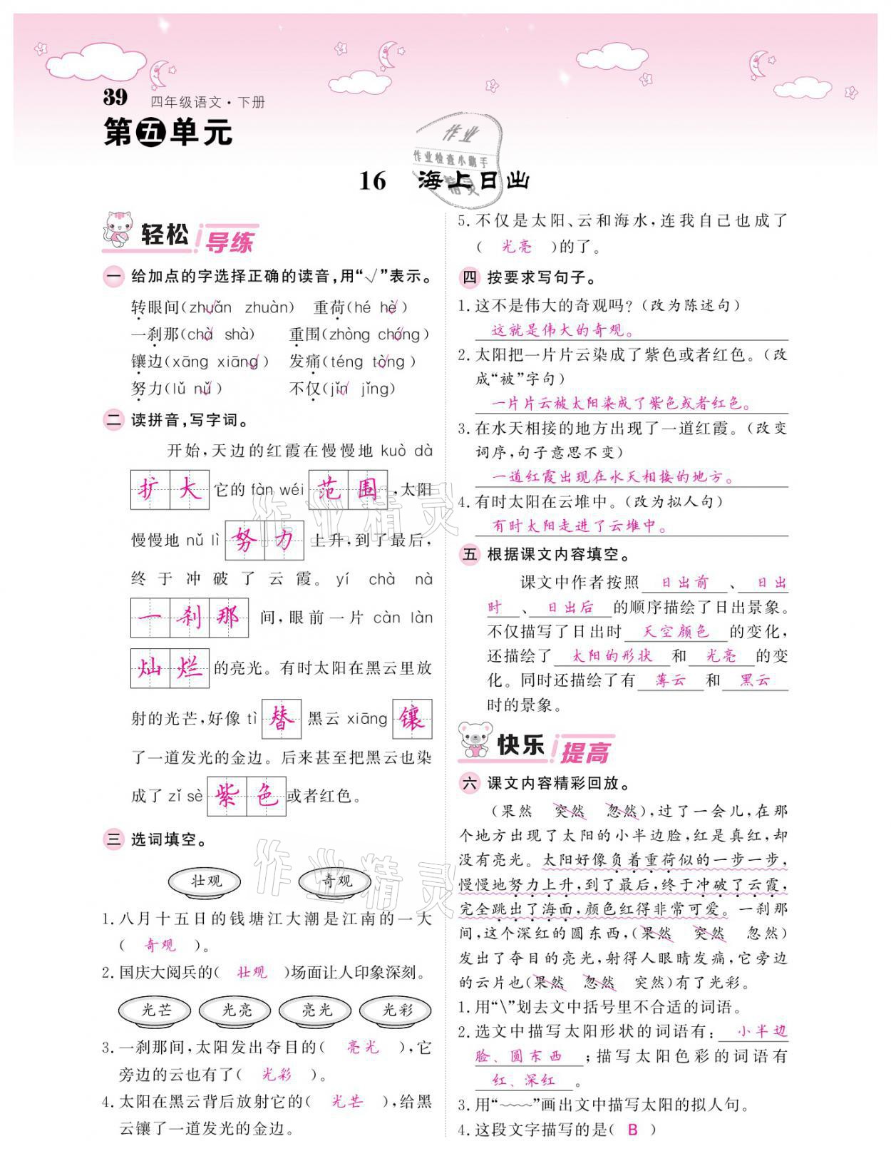注:目前有些书本章节名称可能整理的还不是很完善,但都是按照顺序排列的,请同学们按照顺序仔细查找。练习册 2021年课堂点睛四年级语文下册人教版广东专版 答案主要是用来给同学们做完题方便对答案用的,请勿直接抄袭。