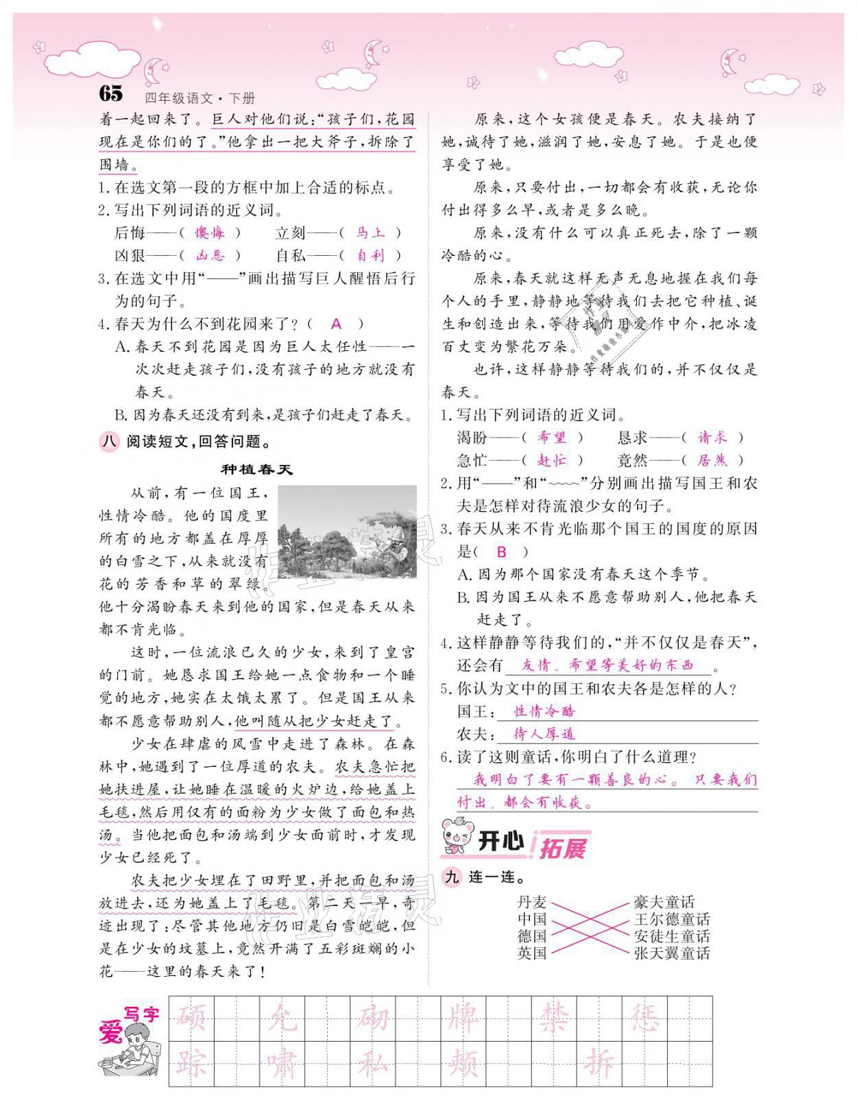 注:目前有些书本章节名称可能整理的还不是很完善,但都是按照顺序排列的,请同学们按照顺序仔细查找。练习册 2021年课堂点睛四年级语文下册人教版广东专版 答案主要是用来给同学们做完题方便对答案用的,请勿直接抄袭。