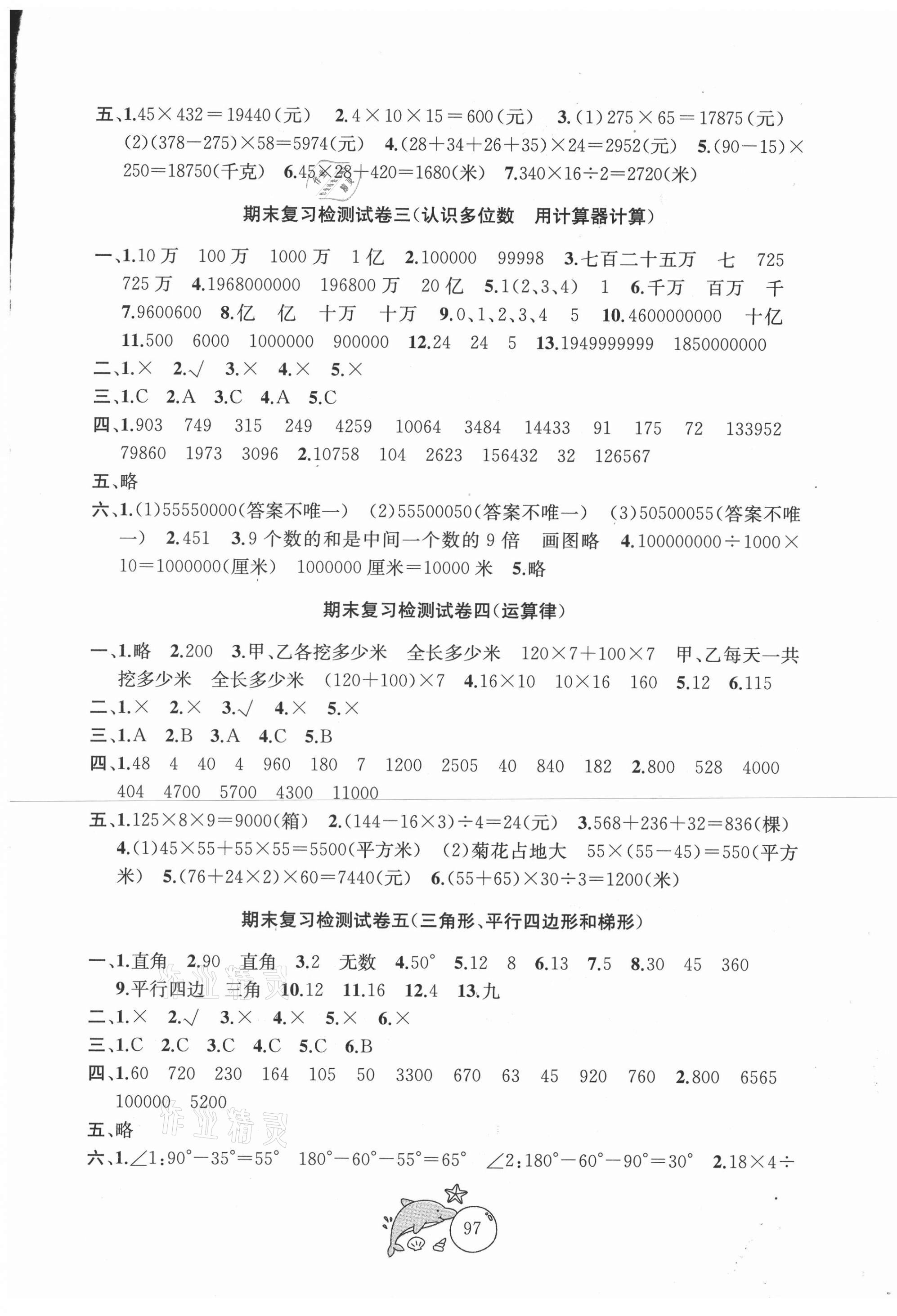 2021年金钥匙1加1目标检测四年级数学下册苏教版