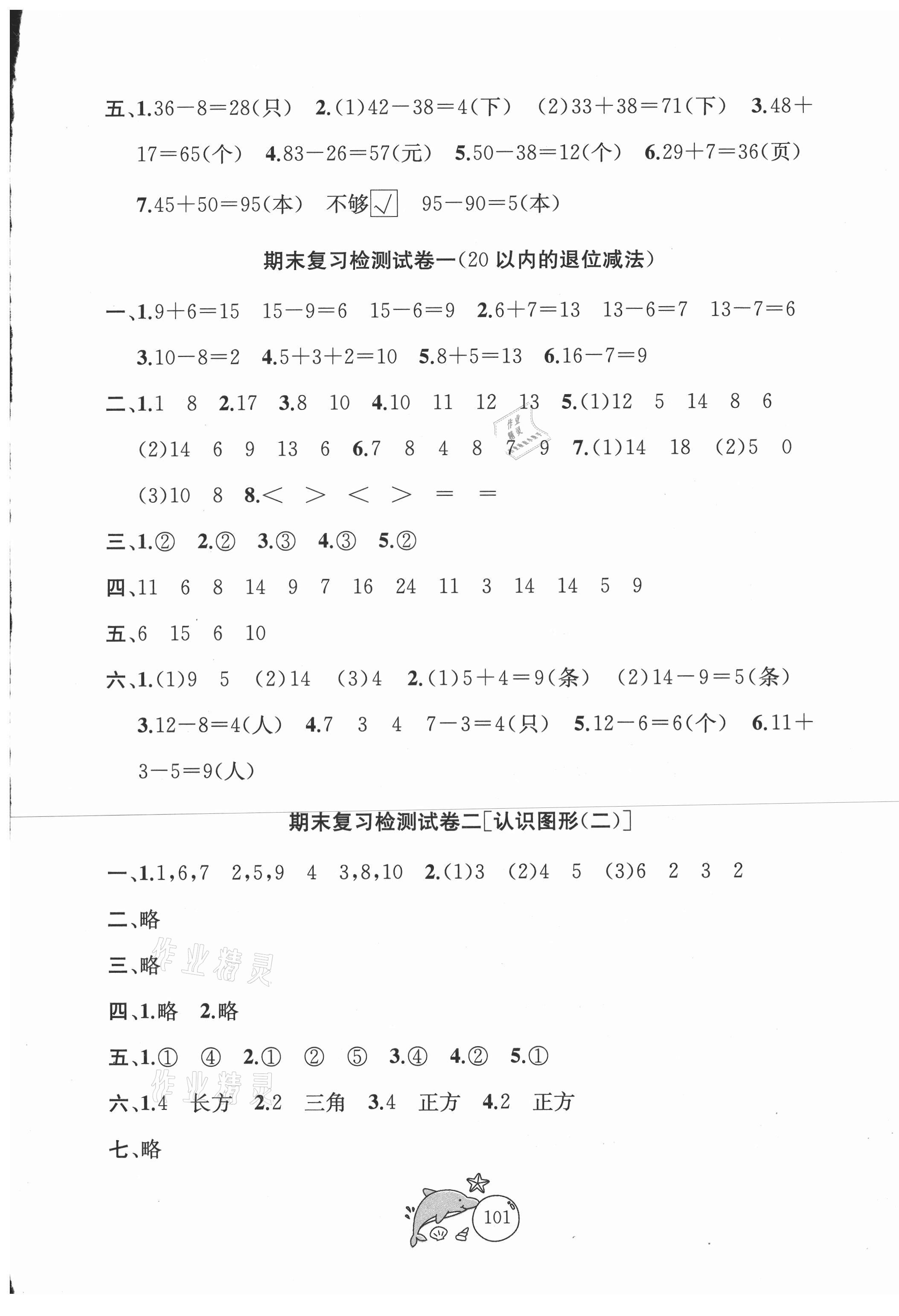 2021年金钥匙1加1目标检测一年级数学下册苏教版
