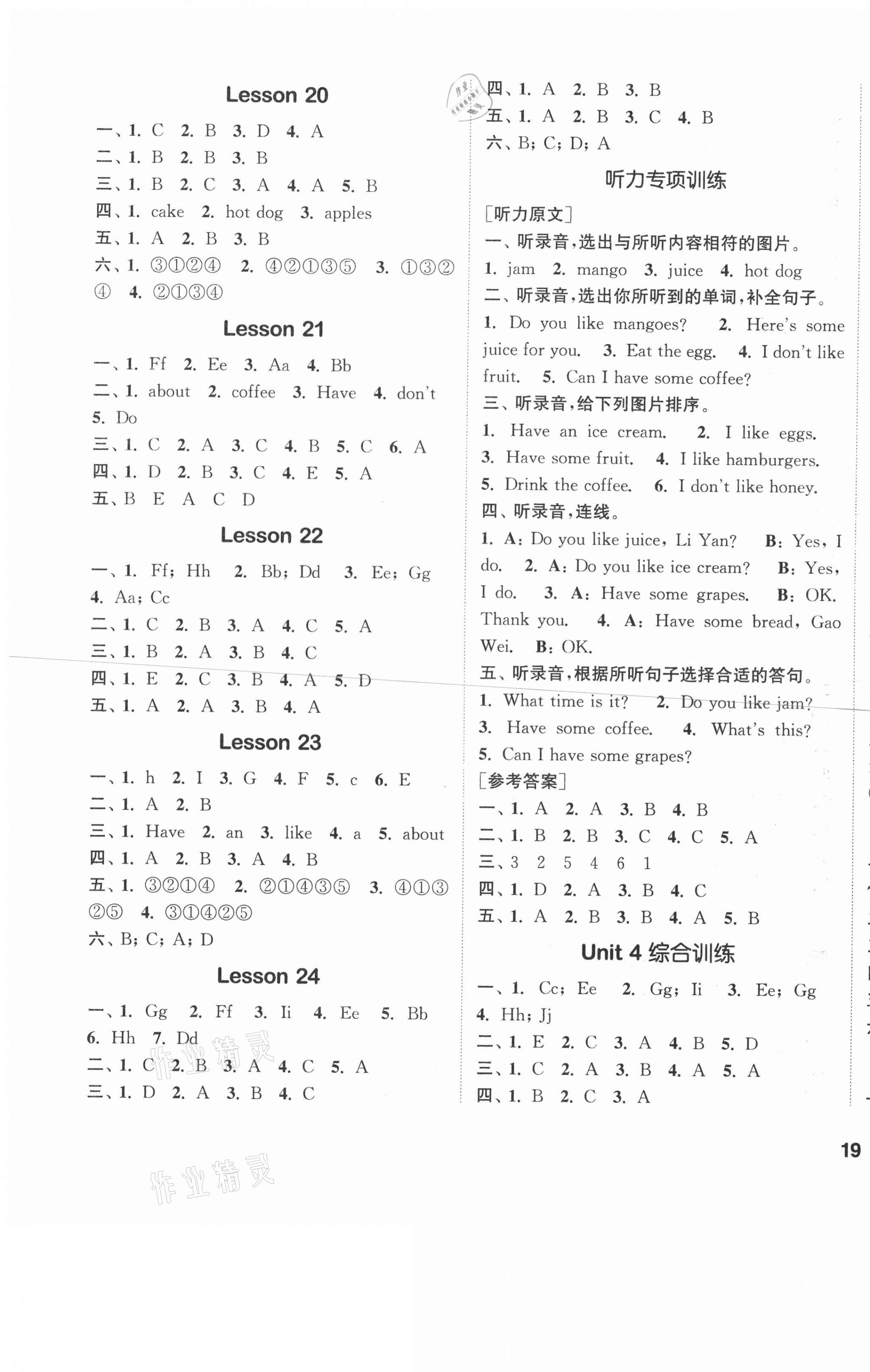注:目前有些书本章节名称可能整理的还不是很完善,但都是按照顺序排列的,请同学们按照顺序仔细查找。练习册 2021年通城学典课时作业本三年级英语下册人教精通版 答案主要是用来给同学们做完题方便对答案用的,请勿直接抄袭。
