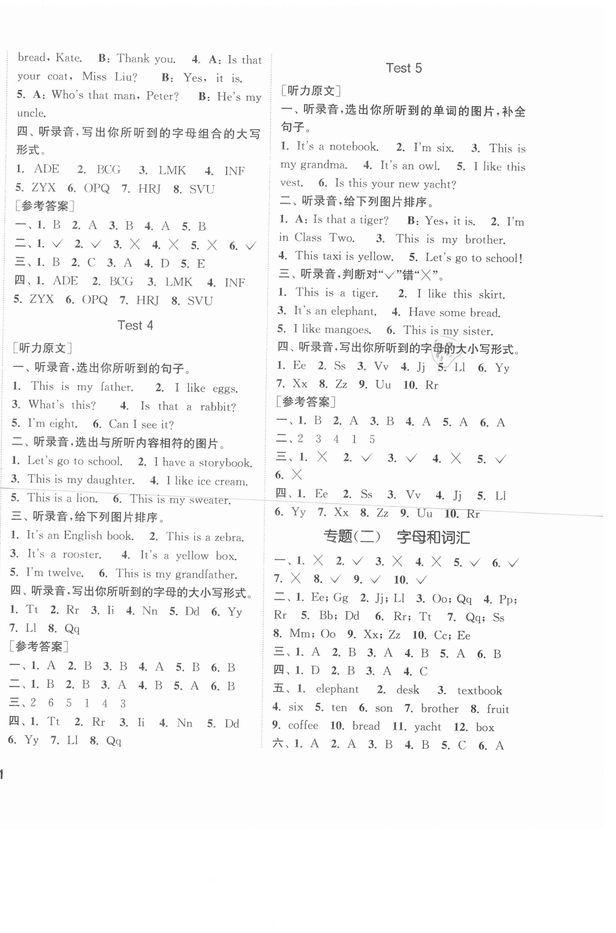 注:目前有些书本章节名称可能整理的还不是很完善,但都是按照顺序排列的,请同学们按照顺序仔细查找。练习册 2021年通城学典课时作业本三年级英语下册人教精通版 答案主要是用来给同学们做完题方便对答案用的,请勿直接抄袭。