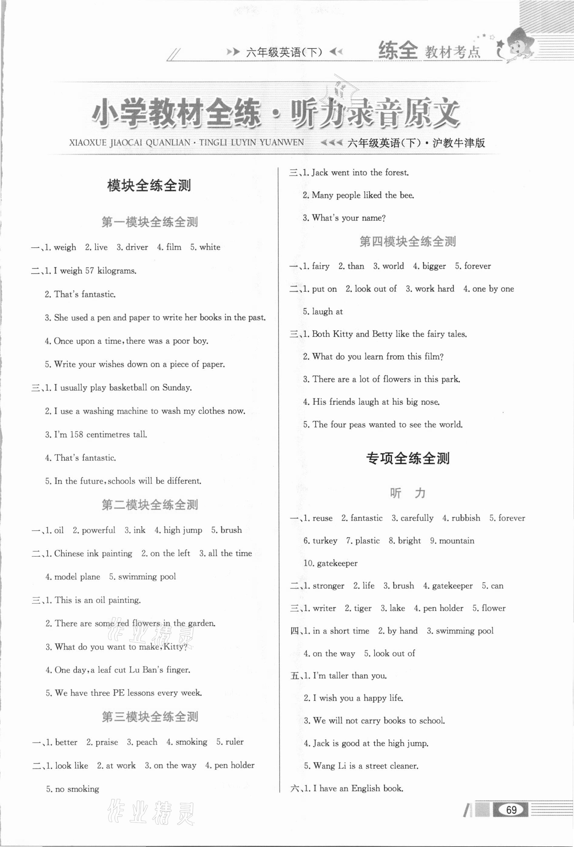 2021年小学教材全练六年级英语下册沪教牛津版三起