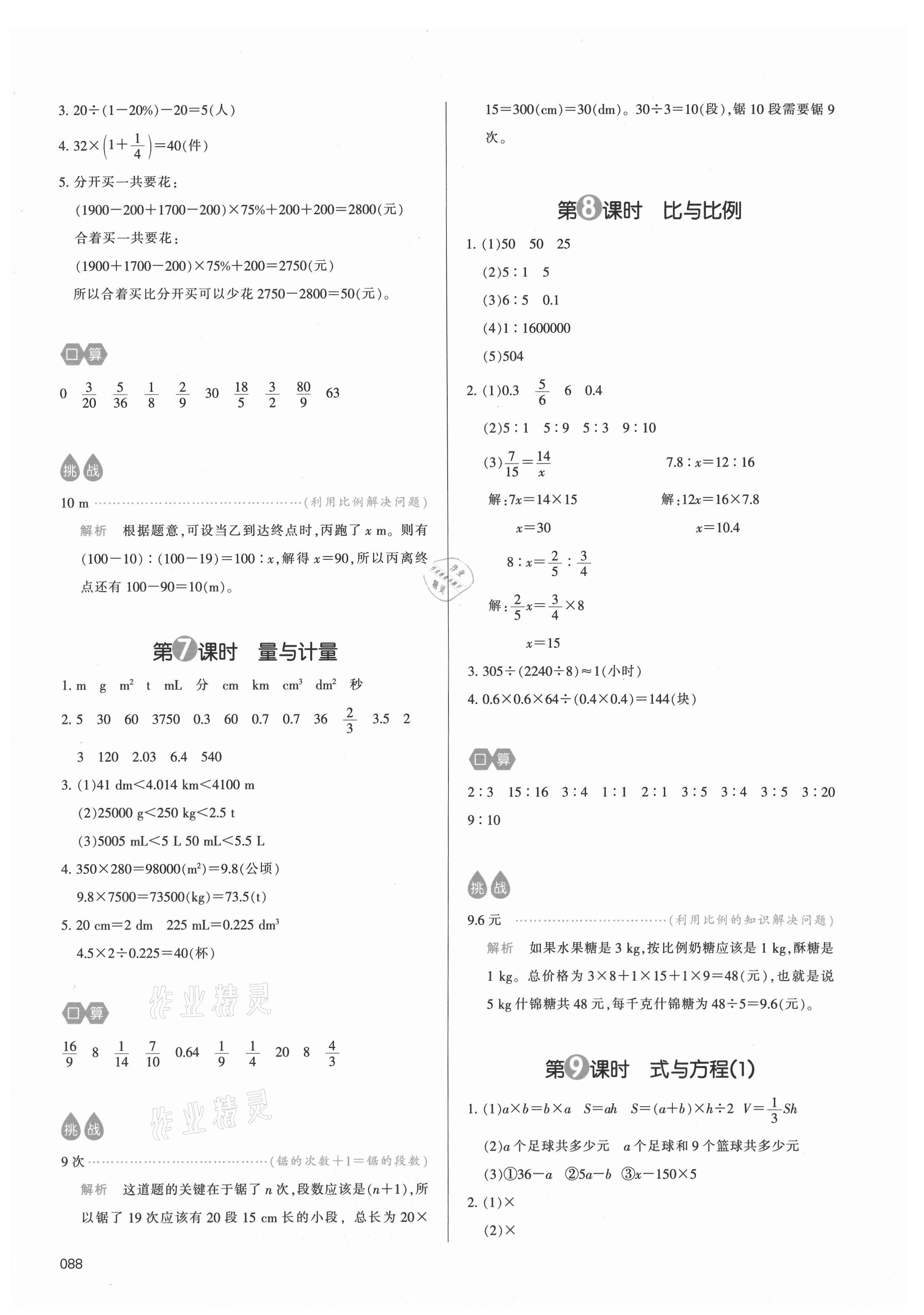 2021年我爱写作业小学数学六年级下册青岛版