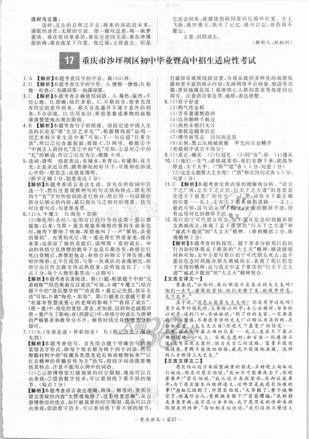 注:目前有些书本章节名称可能整理的还不是很完善,但都是按照顺序排列的,请同学们按照顺序仔细查找。练习册 2021年天利38套中考试题精选语文重庆专版 答案主要是用来给同学们做完题方便对答案用的,请勿直接抄袭。