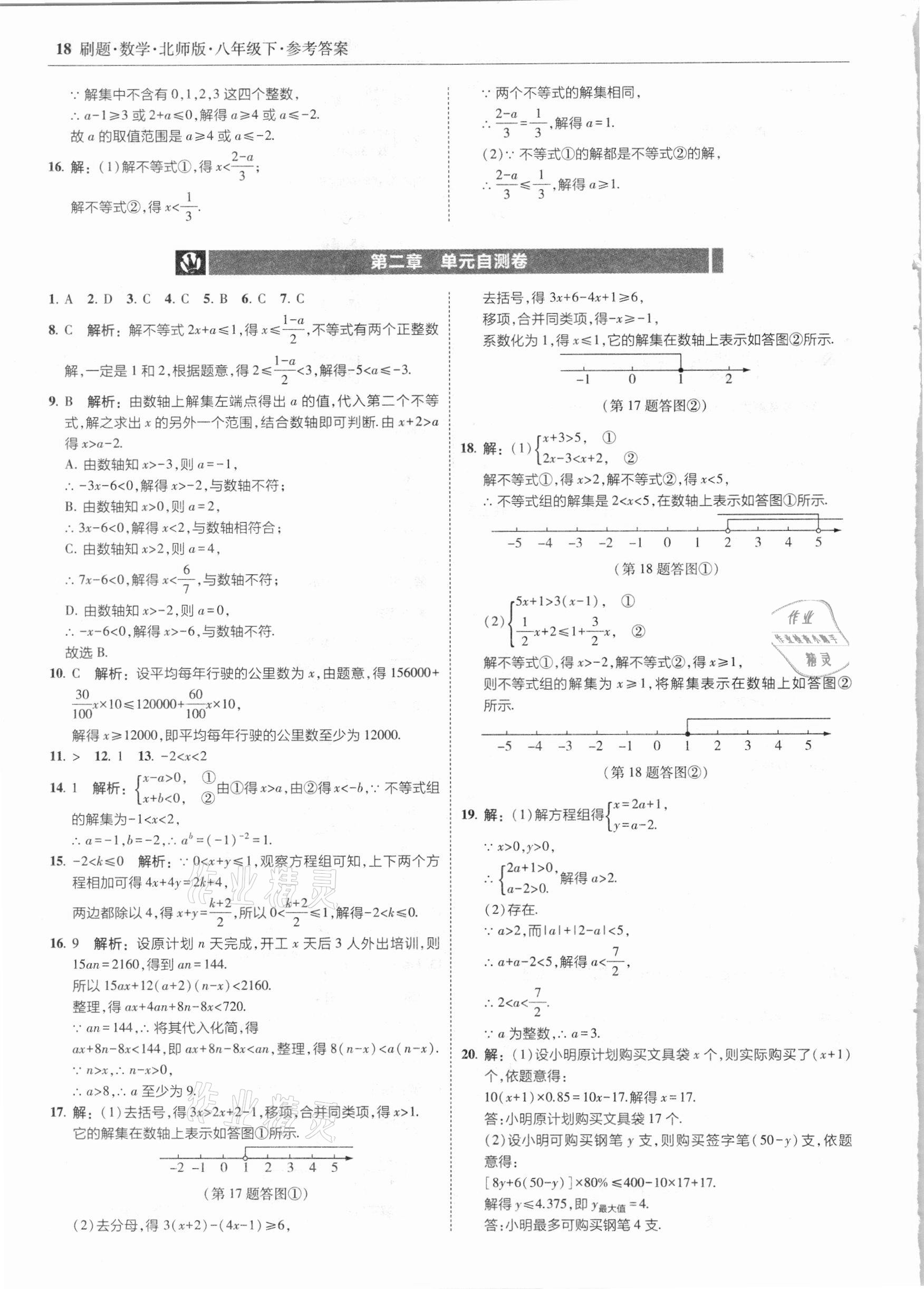 注:目前有些书本章节名称可能整理的还不是很完善,但都是按照顺序排列的,请同学们按照顺序仔细查找。练习册 2021年北大绿卡刷题八年级数学下册北师大版 答案主要是用来给同学们做完题方便对答案用的,请勿直接抄袭。