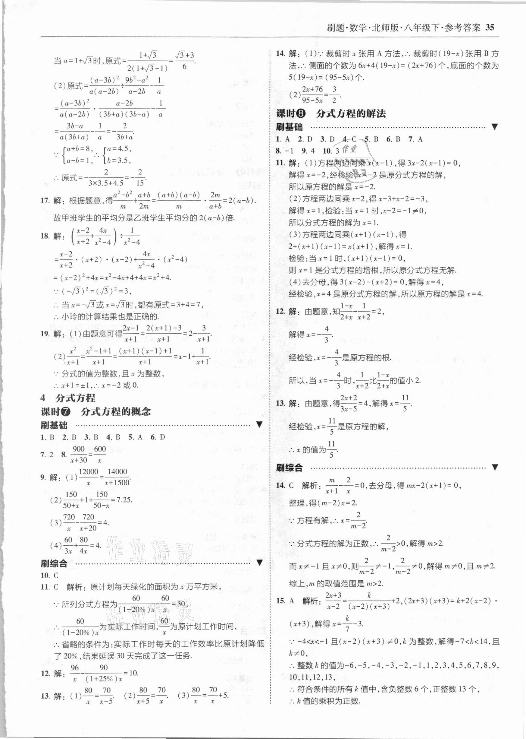 注:目前有些书本章节名称可能整理的还不是很完善,但都是按照顺序排列的,请同学们按照顺序仔细查找。练习册 2021年北大绿卡刷题八年级数学下册北师大版 答案主要是用来给同学们做完题方便对答案用的,请勿直接抄袭。