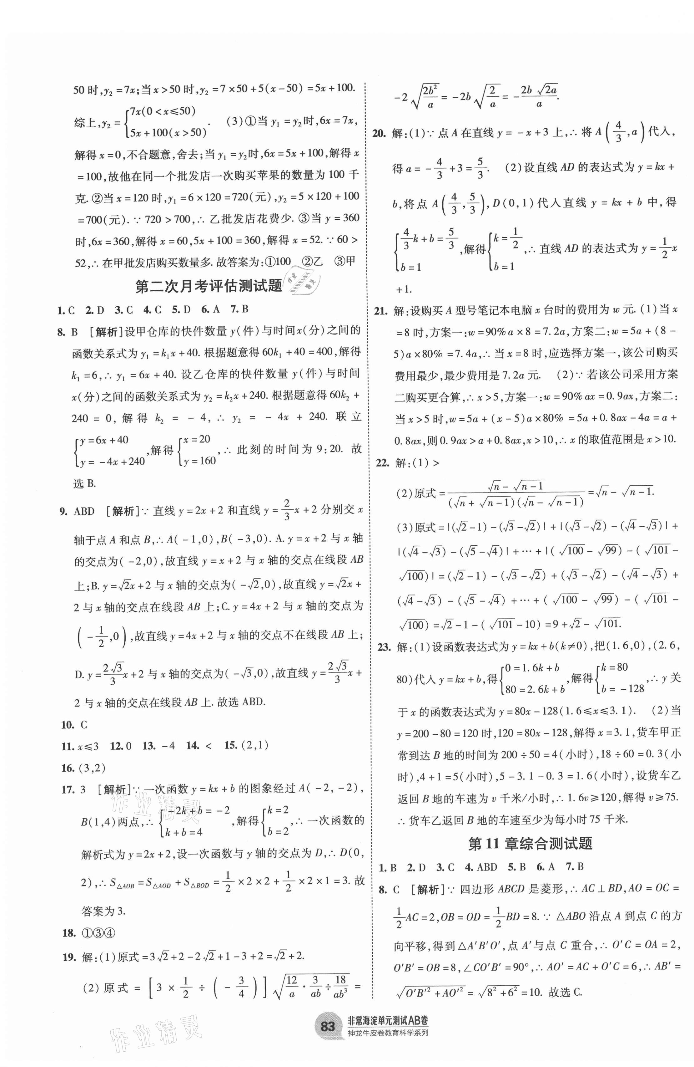 注:目前有些书本章节名称可能整理的还不是很完善,但都是按照顺序排列的,请同学们按照顺序仔细查找。练习册 2021年海淀单元测试AB卷八年级数学下册青岛版 答案主要是用来给同学们做完题方便对答案用的,请勿直接抄袭。
