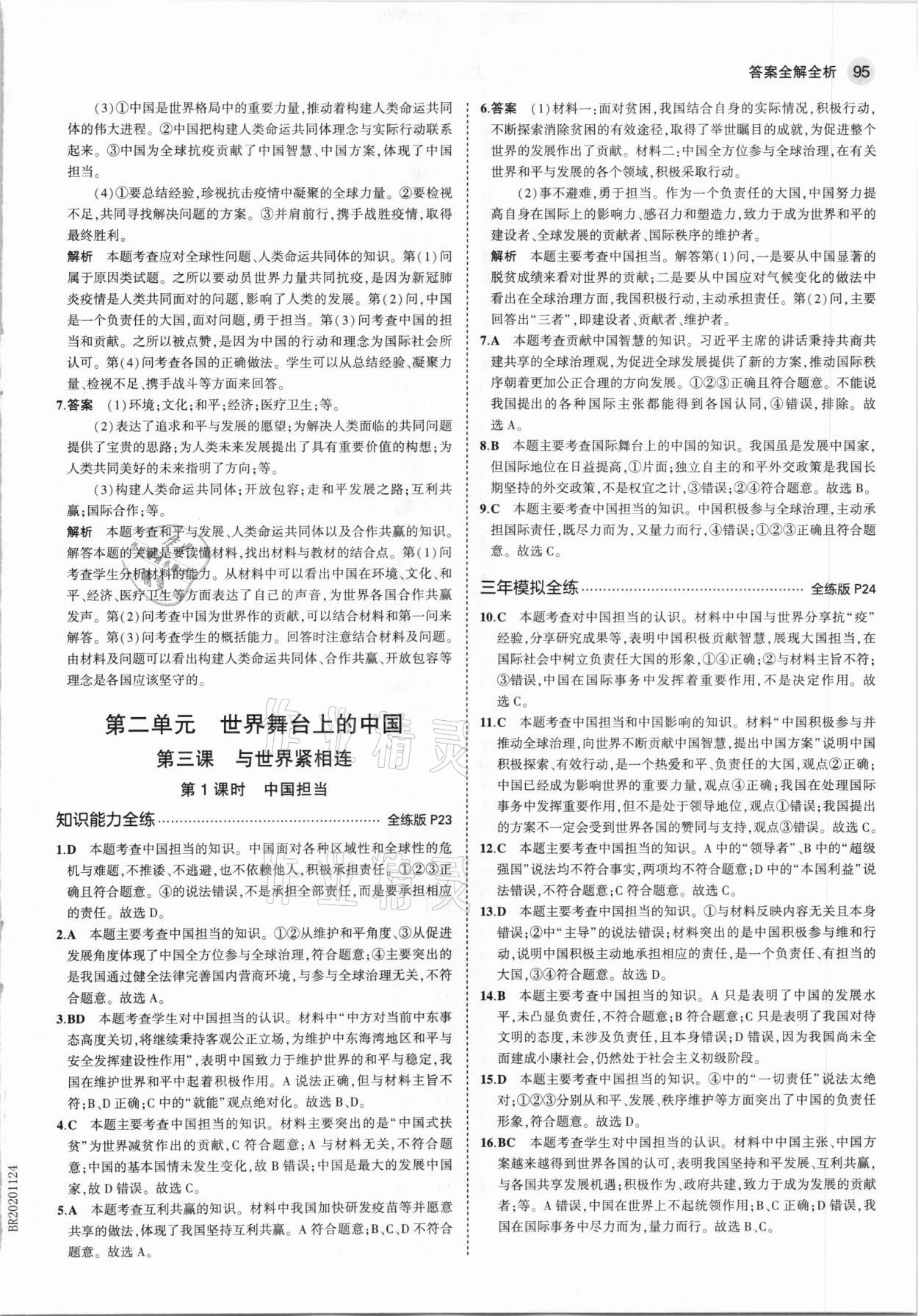 注:目前有些书本章节名称可能整理的还不是很完善,但都是按照顺序排列的,请同学们按照顺序仔细查找。练习册 2021年5年中考3年模拟初中道德与法治九年级下册人教版54制 答案主要是用来给同学们做完题方便对答案用的,请勿直接抄袭。