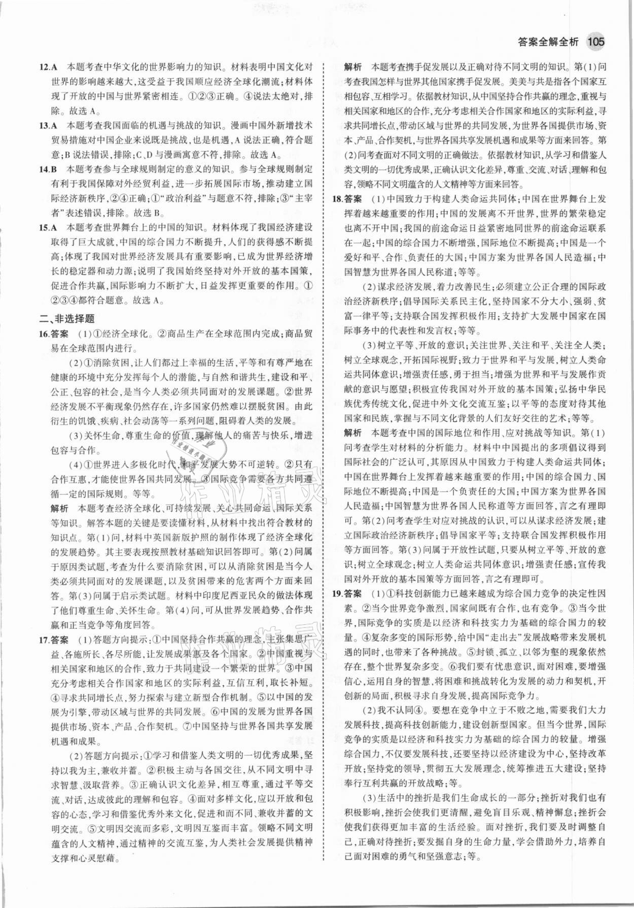 注:目前有些书本章节名称可能整理的还不是很完善,但都是按照顺序排列的,请同学们按照顺序仔细查找。练习册 2021年5年中考3年模拟初中道德与法治九年级下册人教版54制 答案主要是用来给同学们做完题方便对答案用的,请勿直接抄袭。