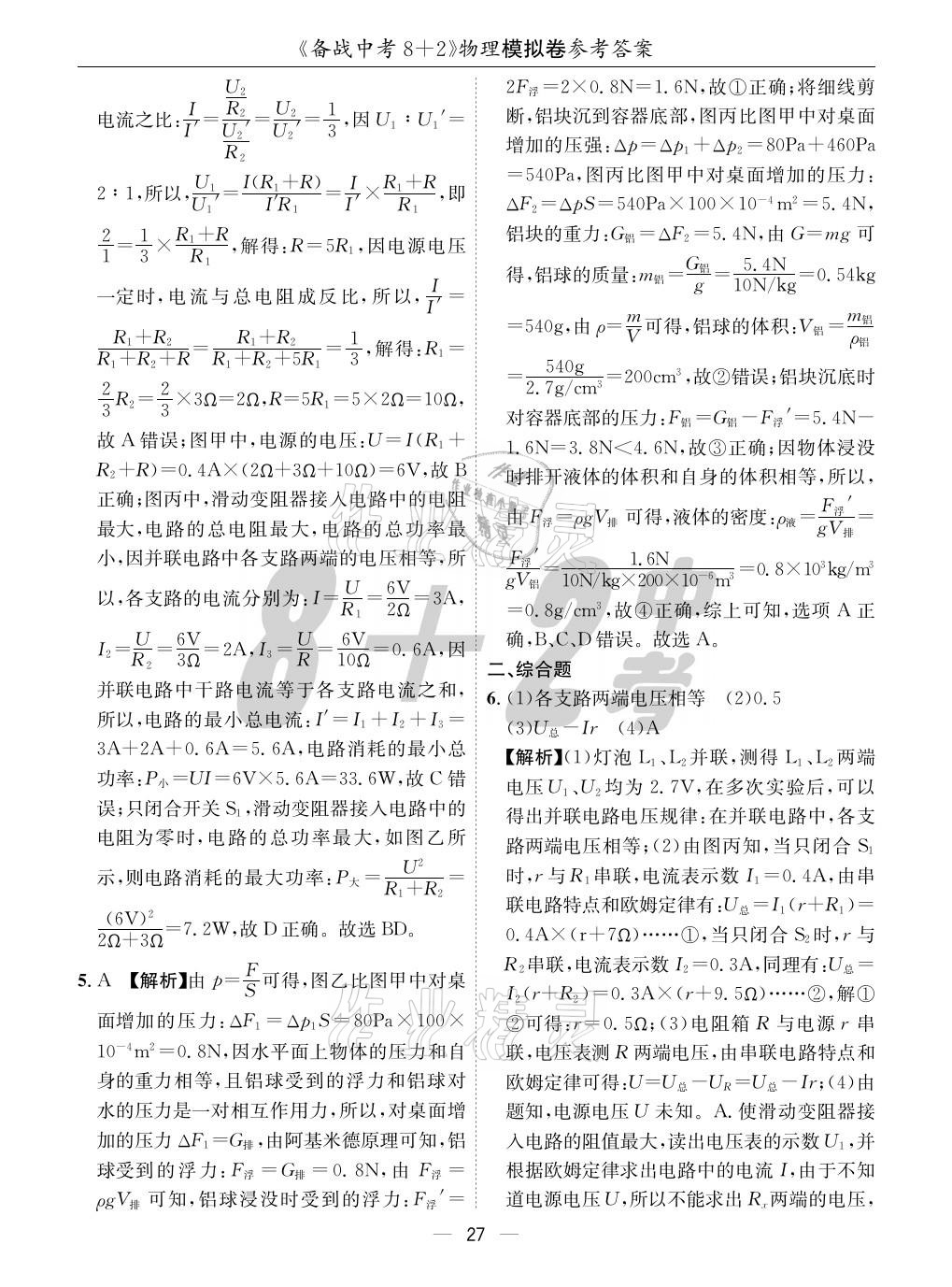 注:目前有些书本章节名称可能整理的还不是很完善,但都是按照顺序排列的,请同学们按照顺序仔细查找。练习册 2021年成都备战中考8加2物理 答案主要是用来给同学们做完题方便对答案用的,请勿直接抄袭。