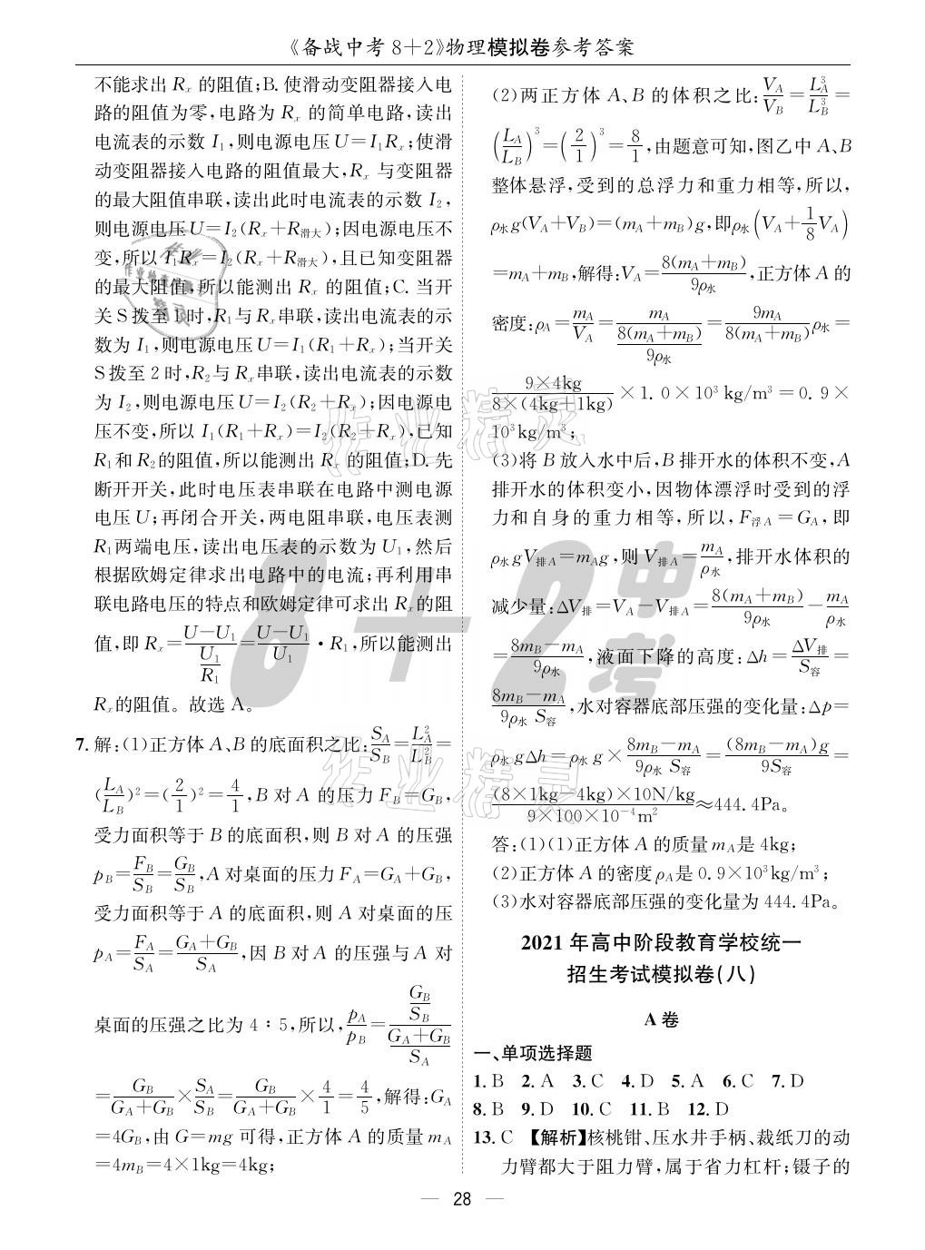 2021年成都备战中考8加2物理