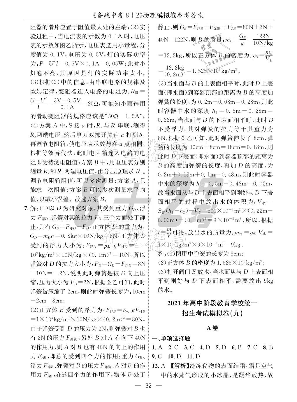 注:目前有些书本章节名称可能整理的还不是很完善,但都是按照顺序排列的,请同学们按照顺序仔细查找。练习册 2021年成都备战中考8加2物理 答案主要是用来给同学们做完题方便对答案用的,请勿直接抄袭。