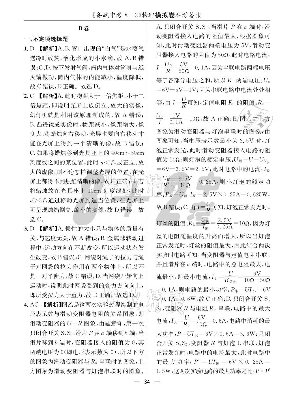 注:目前有些书本章节名称可能整理的还不是很完善,但都是按照顺序排列的,请同学们按照顺序仔细查找。练习册 2021年成都备战中考8加2物理 答案主要是用来给同学们做完题方便对答案用的,请勿直接抄袭。