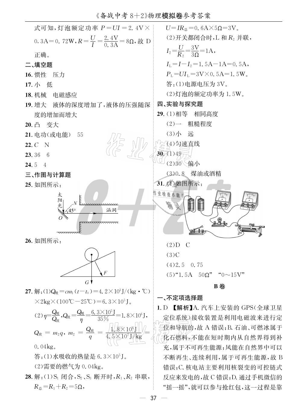 注:目前有些书本章节名称可能整理的还不是很完善,但都是按照顺序排列的,请同学们按照顺序仔细查找。练习册 2021年成都备战中考8加2物理 答案主要是用来给同学们做完题方便对答案用的,请勿直接抄袭。